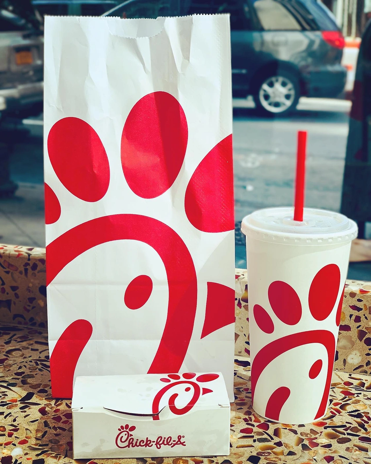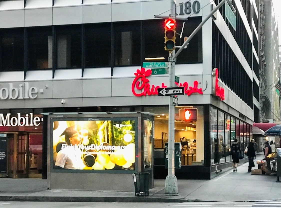 사진을 찍자마자 날아가듯 향한 곳은 바로 칙필레 (Chick-fil-A). 칙필레로 말할 것 같으면, 1946년 미국 아틀란트주에서 시작하여 현재 미국 전 지역에 약 3천 개의 점포를 보유한, 오너가 아주 독실한 기독교 신자로 주일에는 영업을 하지 않는, 미국 전 지역에서 가장 유명한 치킨버거 프랜차이즈 브랜드 중 하나이다.