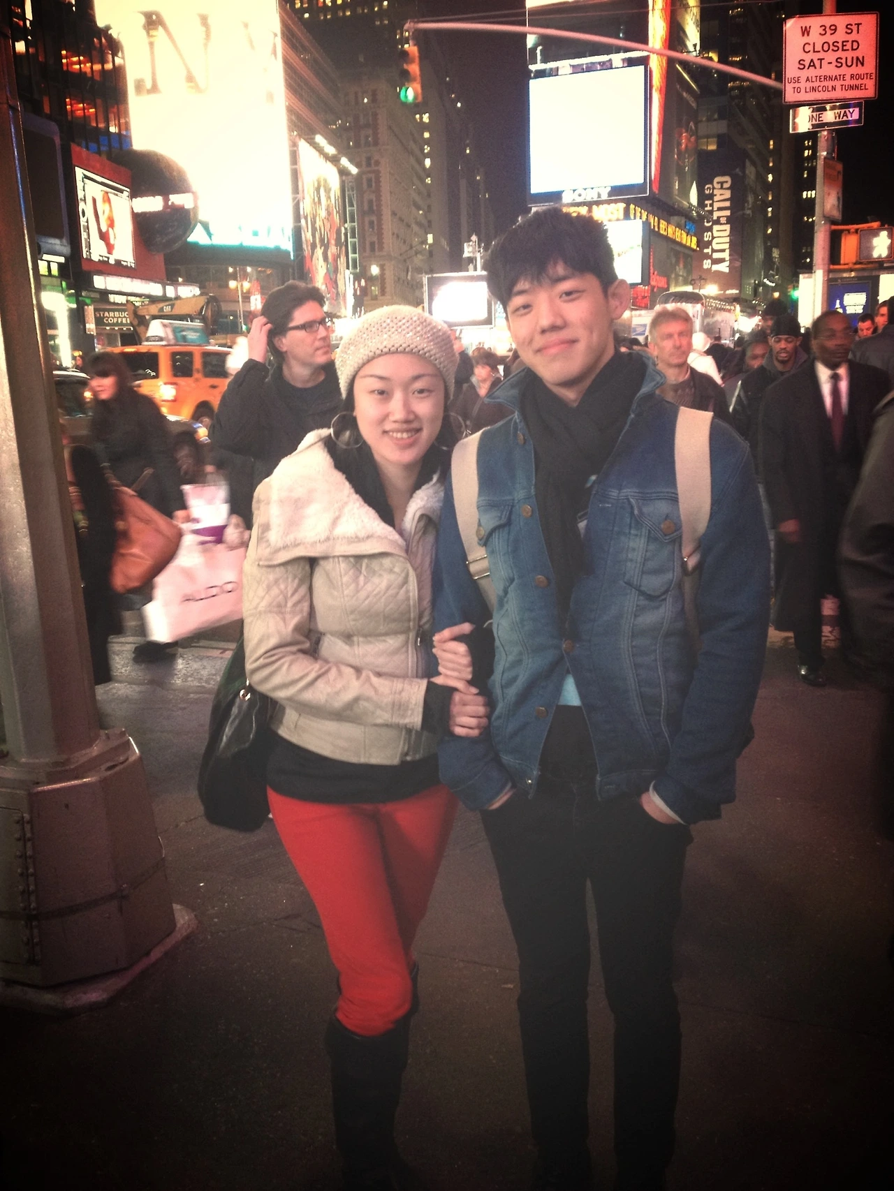 누가 봐도 뉴욕인 줄 알 수 있는 상징적인 장소 중 하나인 타임스퀘어에서 사진 찍기
