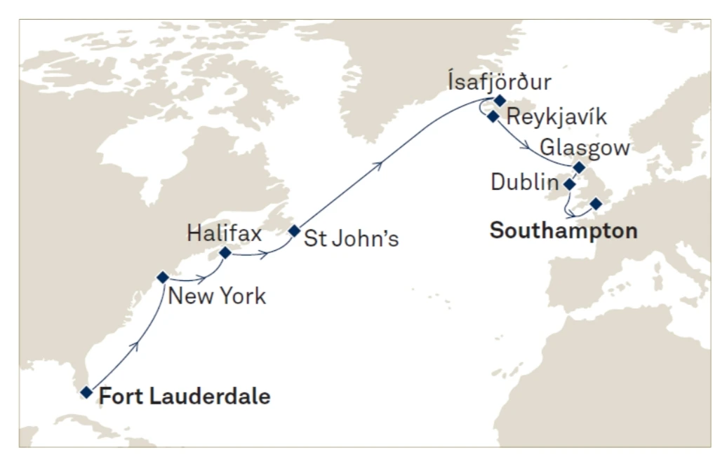 카리브해 크루즈를 끝낸 퀸 엘리자베스는 본격적인 북유럽 크루즈를 시작하기 전에 미국과 캐나다를 경유했다.
