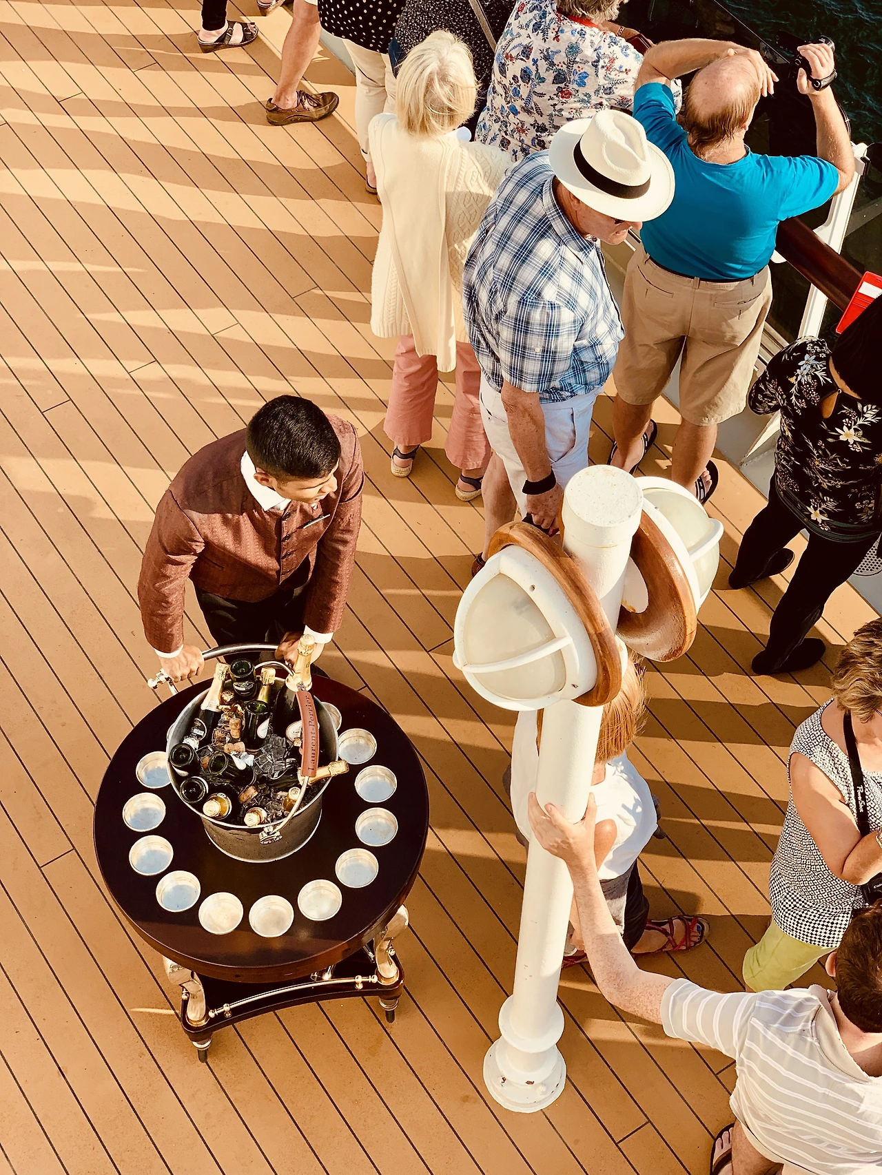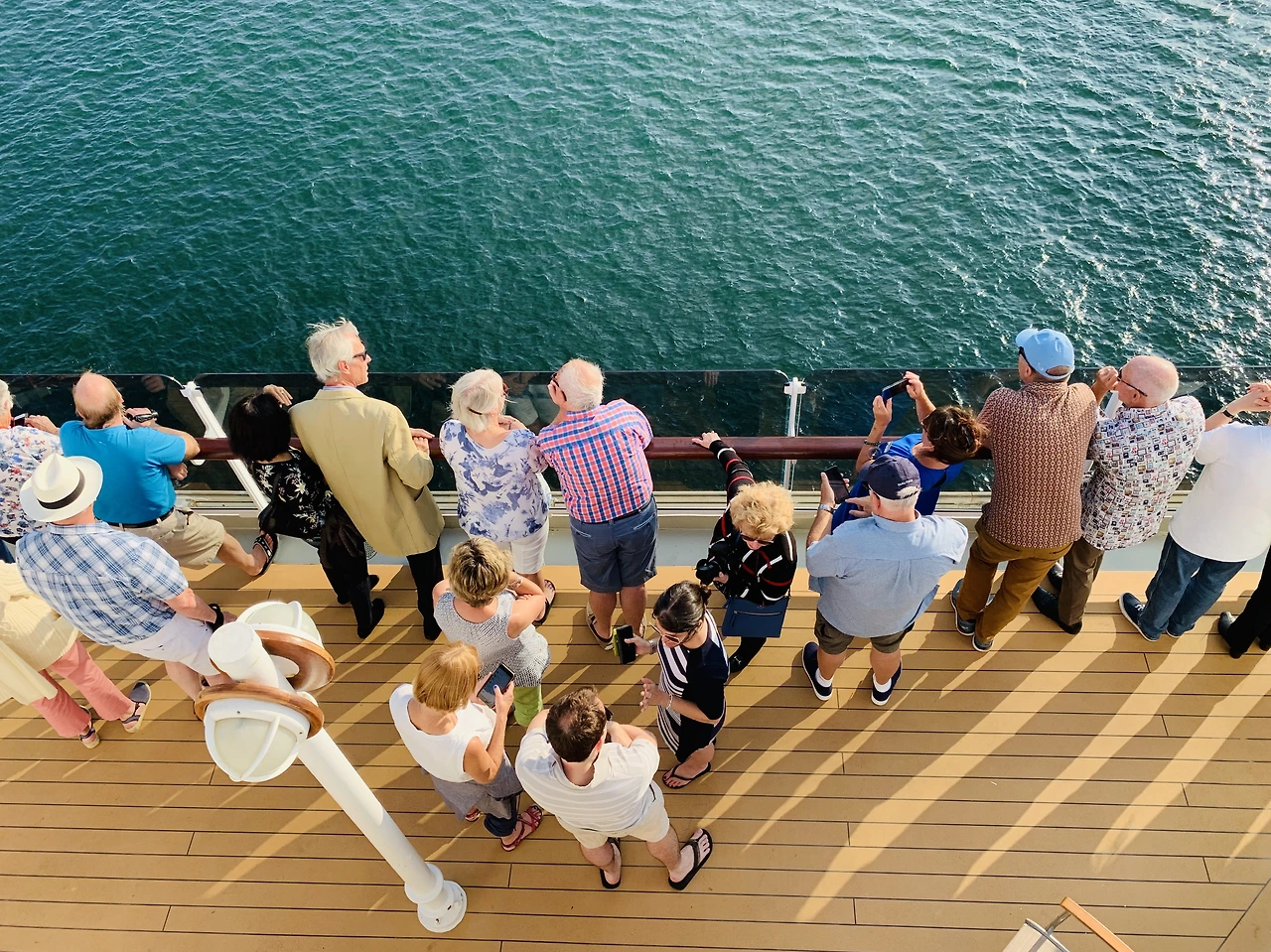 오픈덱에 가득 차 있던 승객들과 승무원들은 손을 흔들며 소리쳐 인사했다. 배도 사람도 서로를 반가워하며 그 순간을 기념했다.