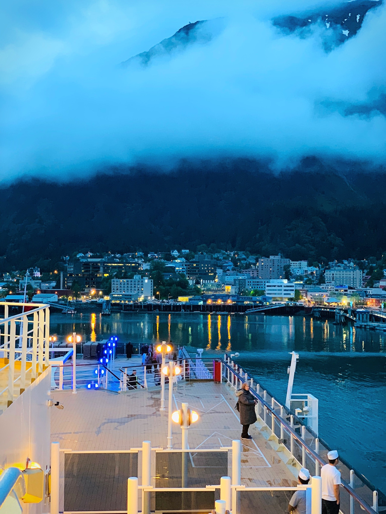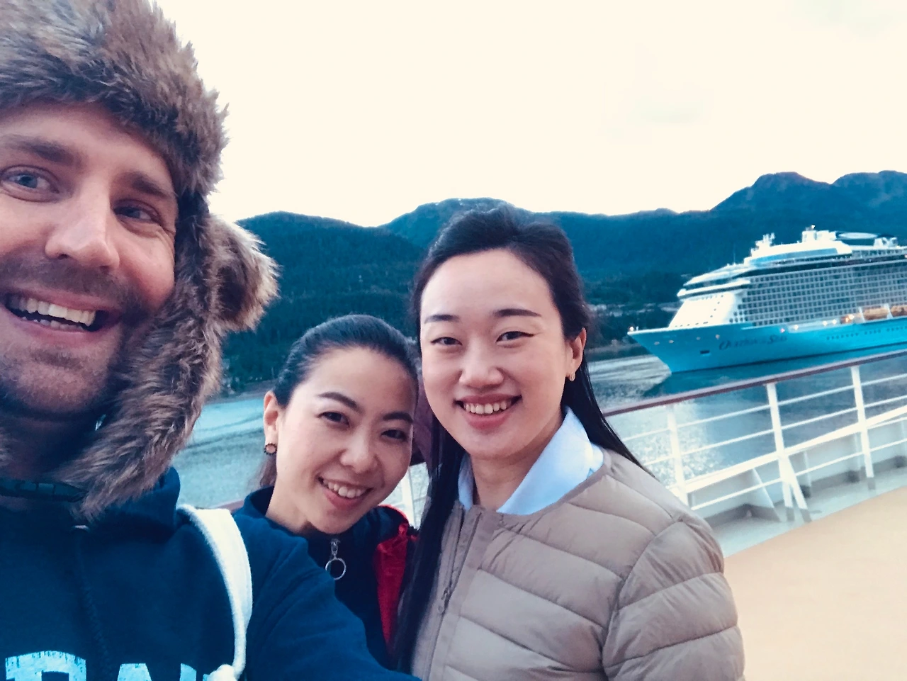 그해 알래스카 크루즈 중 마지막으로 주노에 정박한 날이었다. 친구들과 주노의 마지막을 봐야 한다며 출항할 때 선수 갑판으로 갔었다. 마침 바로 옆에서 로얄 캐리비안 크루즈가 지나가서 같이 기념사진도 찍고 괜히 손 흔들며 소리 질러 인사하고 재밌다고 깔깔 웃었더랬다.