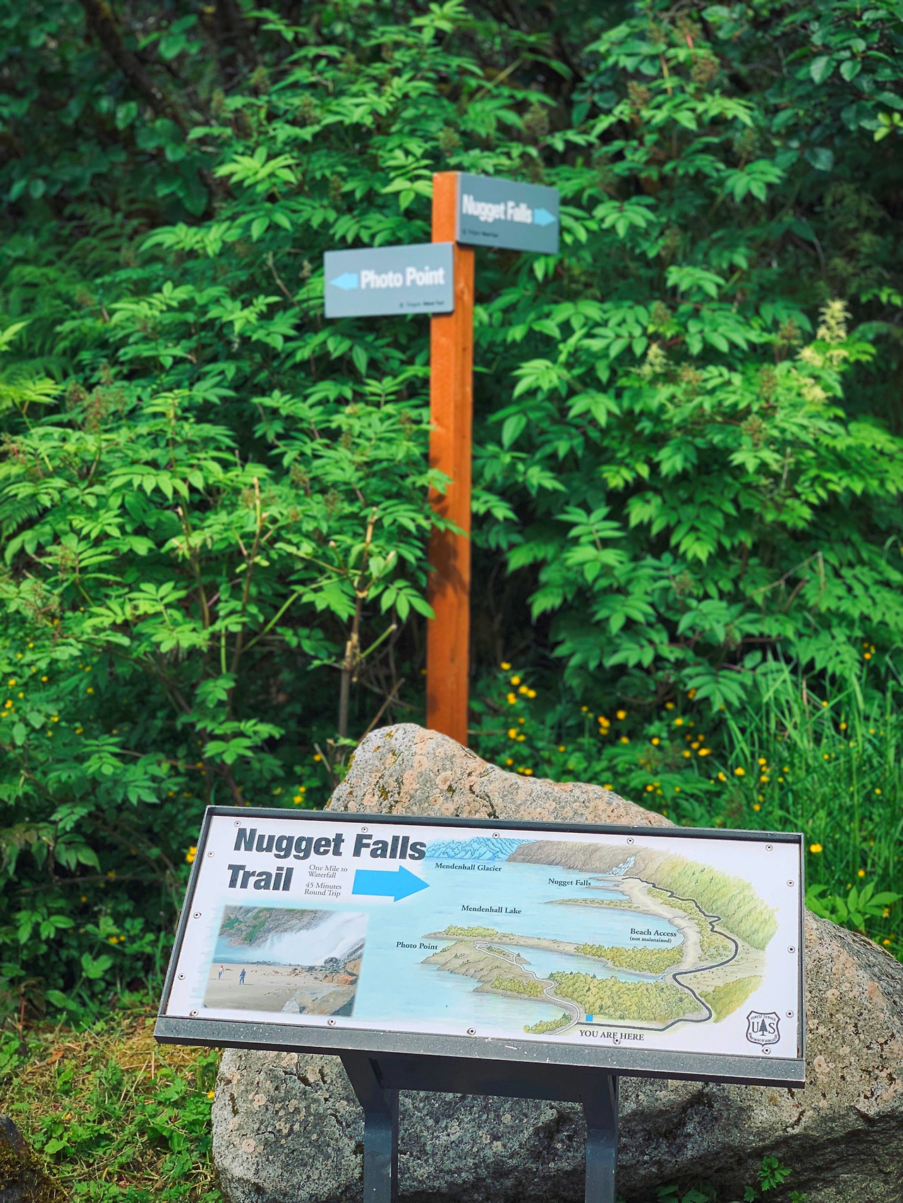 그 옆에 누겟 폭포가 있는데 높이가 약 115미터 정도 된다. 빙하에 비하면 그 크기가 작기는 하지만, 한 장의 사진에 담은 두 빙하와 폭포를 보면 꽤나 아름다운 한 폭의 그림이다.