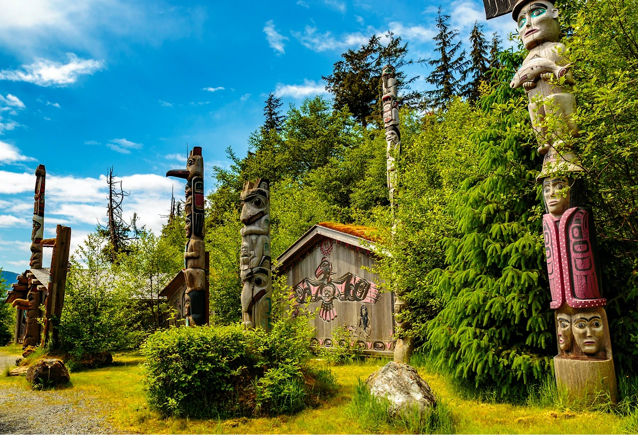 배에서 내려 해안가를 산책하다 보면 시내가 인접해 있다. 마을 안을 구경하다 보면 80개도 넘게 있다는 미국 원주민의 커다란 토템을 쉽게 볼 수 있다. 이중에는 100년도 넘은 것들도 있다.
