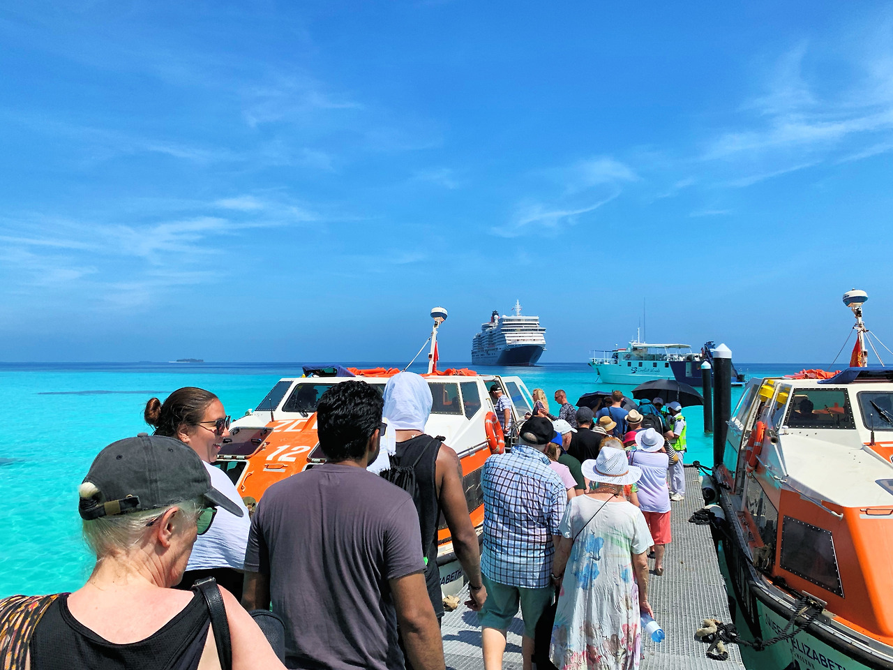 물놀이도 할 만큼 했으니 다시 배로 돌아가야 한다. 승객이며 직원이며 할 것 없이 물놀이의 흔적과 아쉬움을 숨기지 못한 채 텐더보트로 향했다.