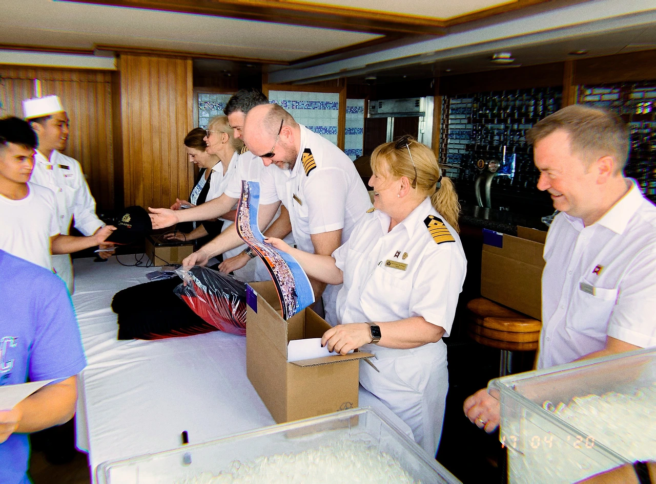 필리피노 크루가 내리기 전에 주는 듯했다.
