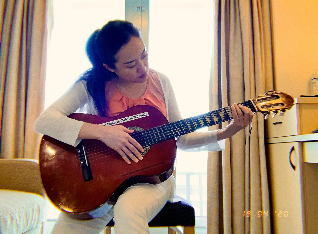 방에 돌아와서 기타 연습을 했다.