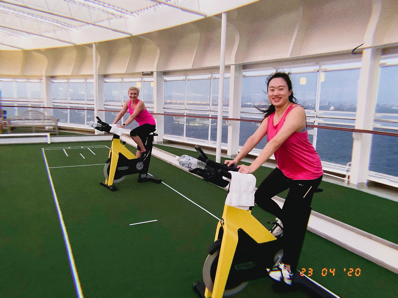 오픈덱에서 스피닝을 하며 땀 흘리니