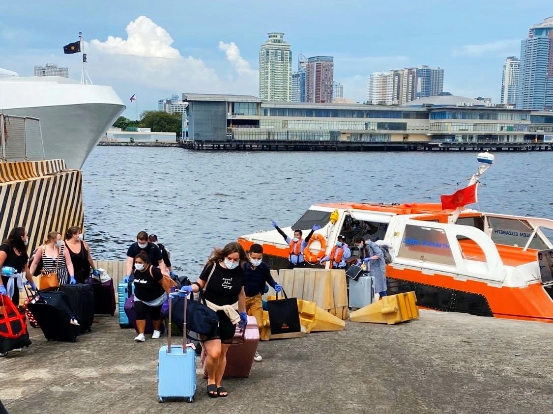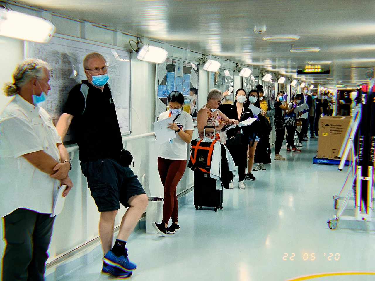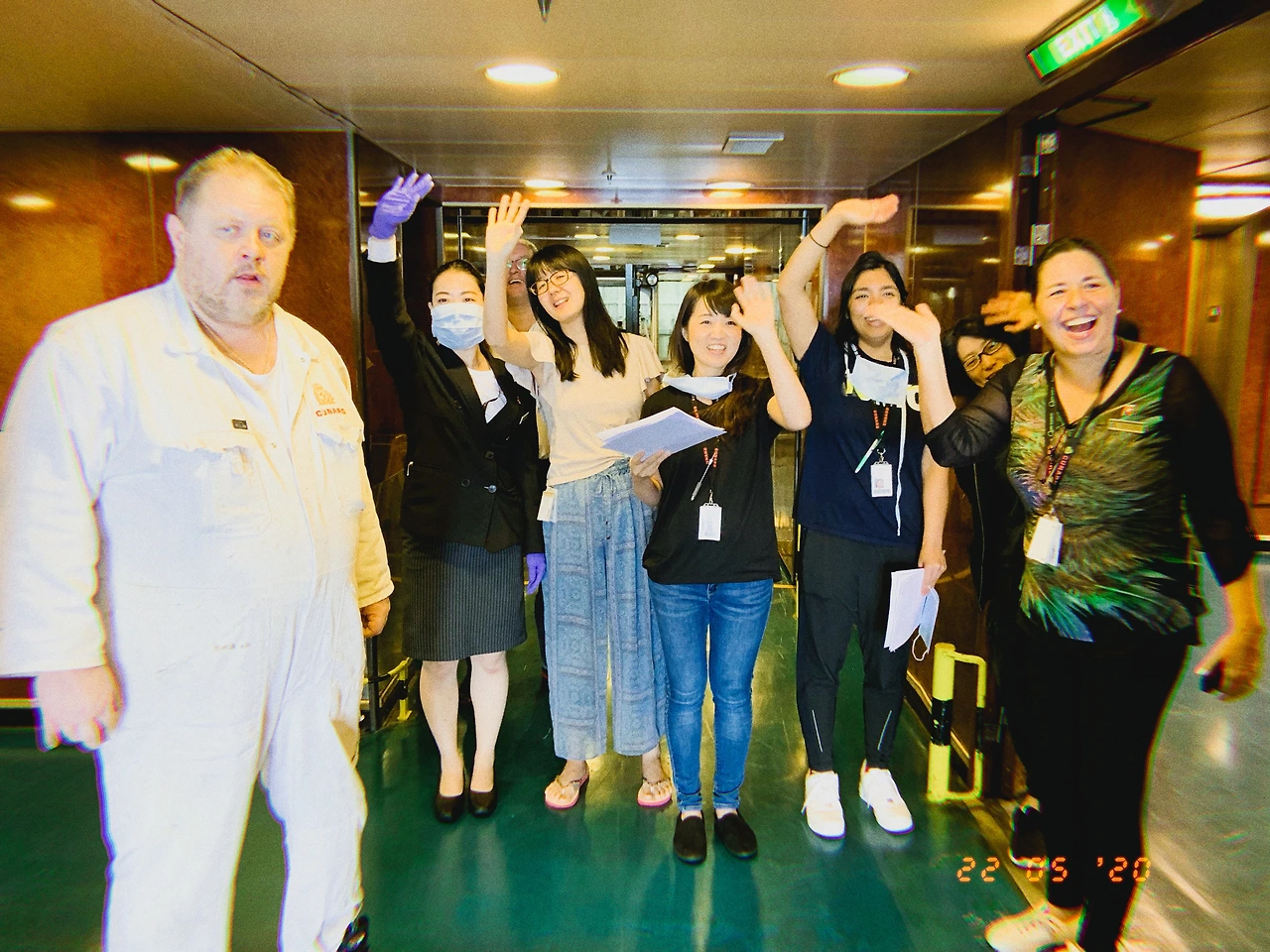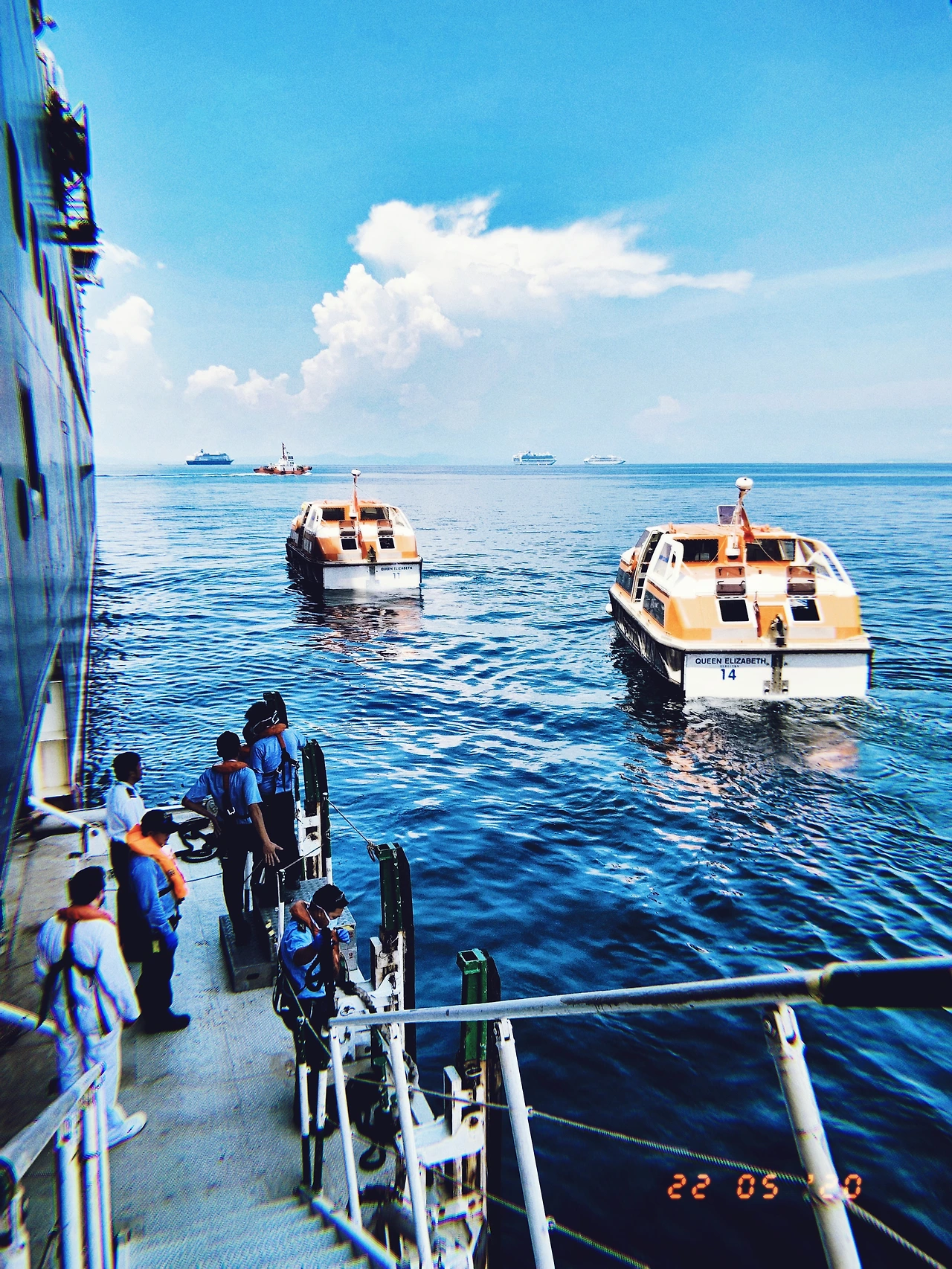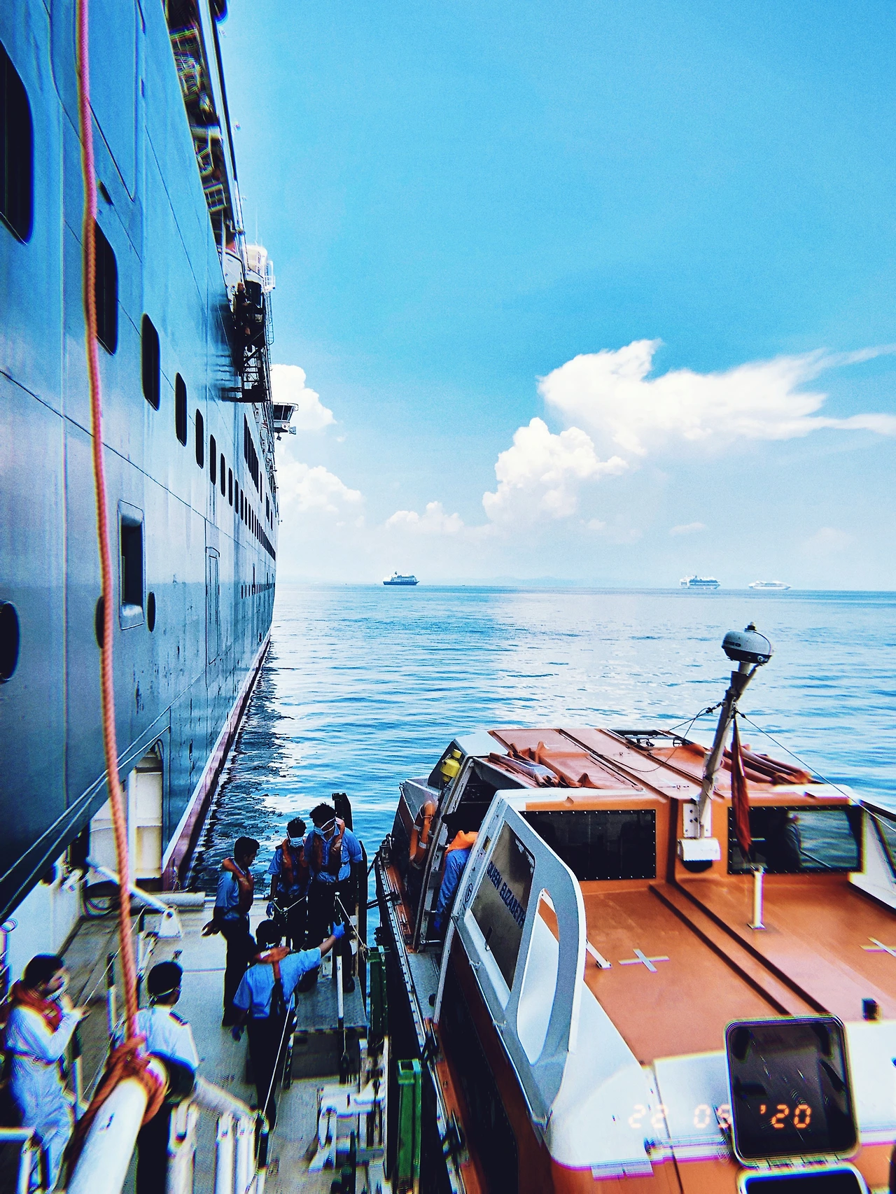 BOQ 하선 허가증 받으려고 기다리는 크루들.