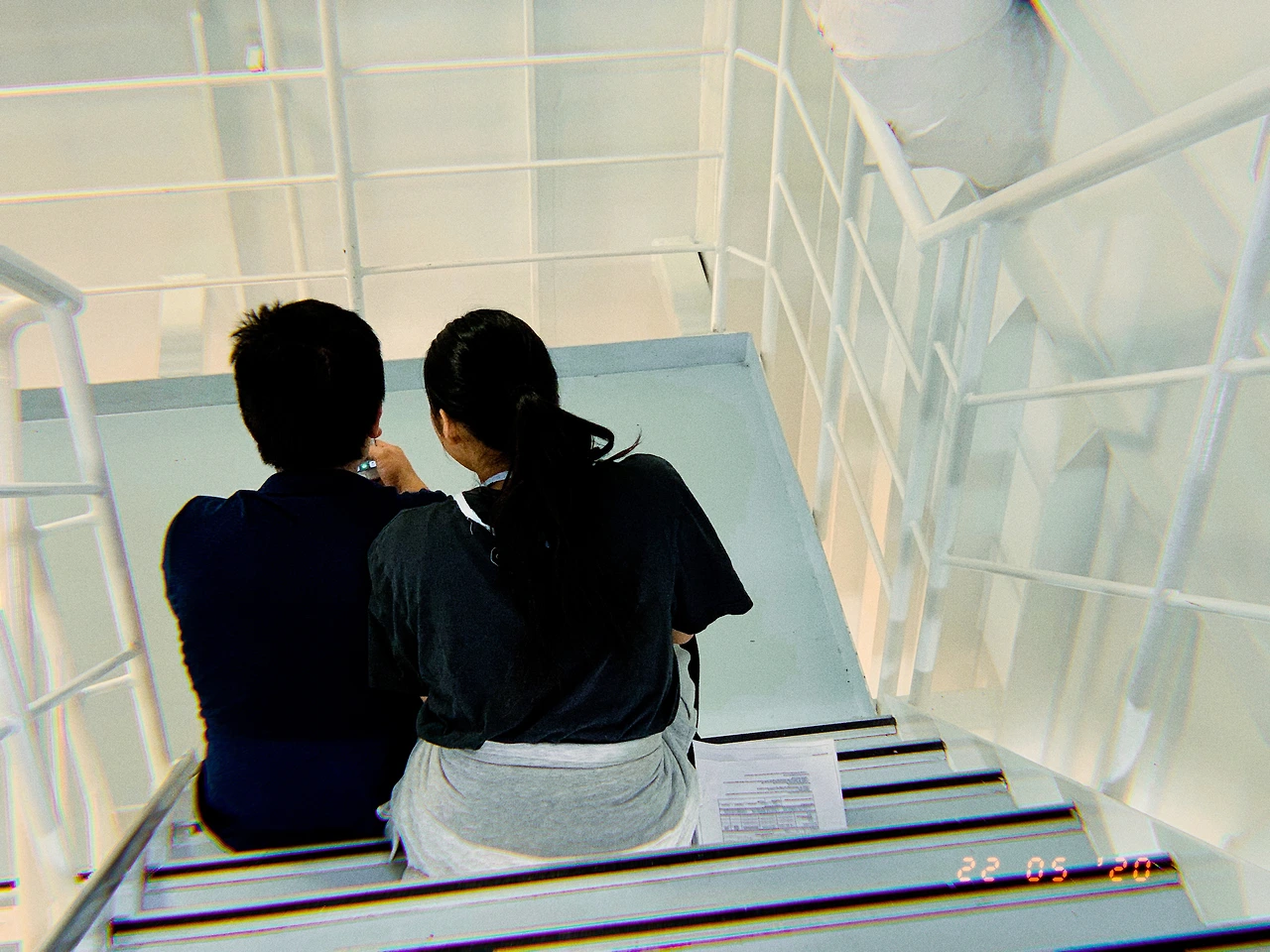 계단에 앉아 있는 모습이 너무 귀여웠다.