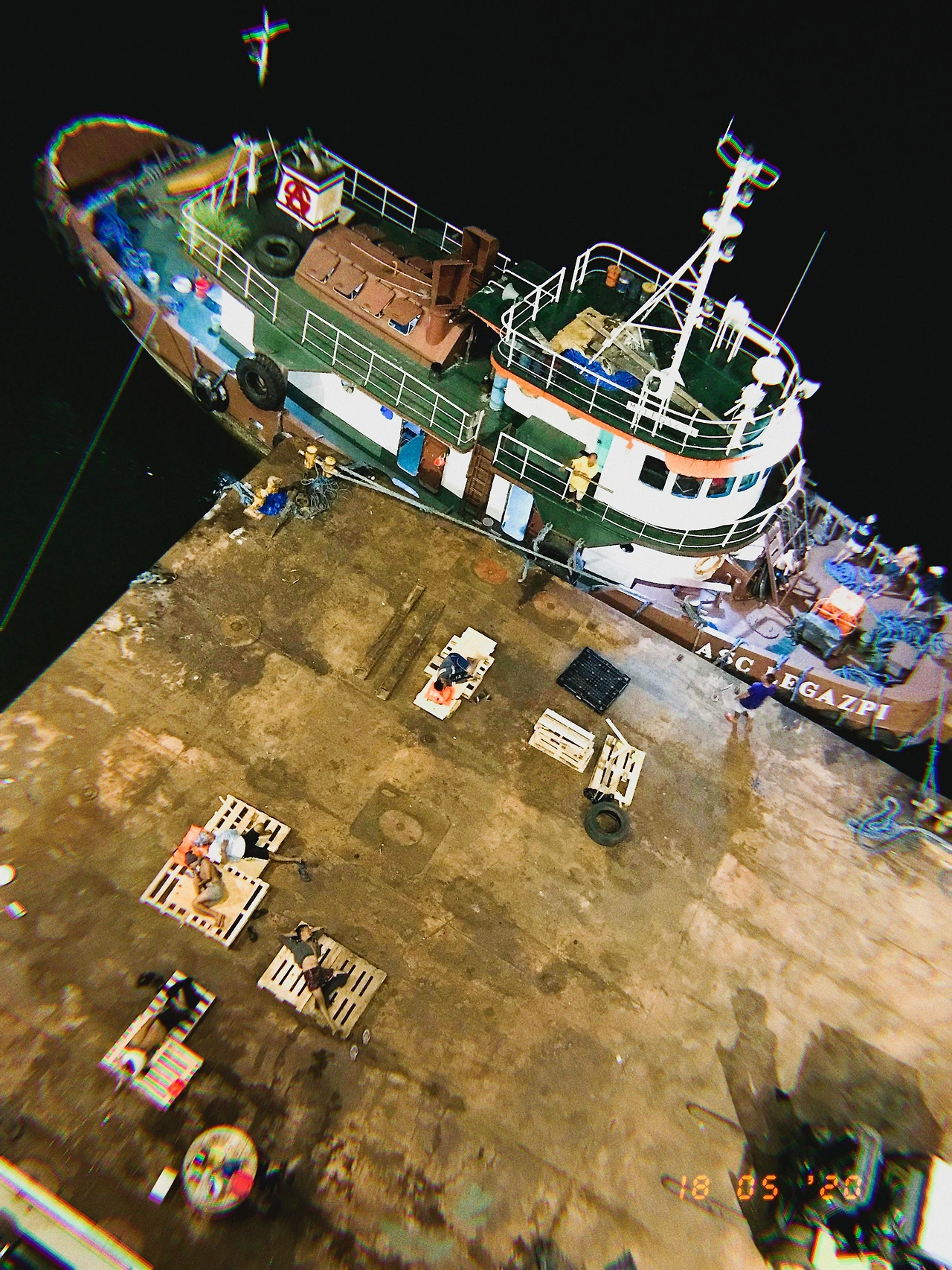 쓰레기 수거 배가 아직도 안가고 있었다.