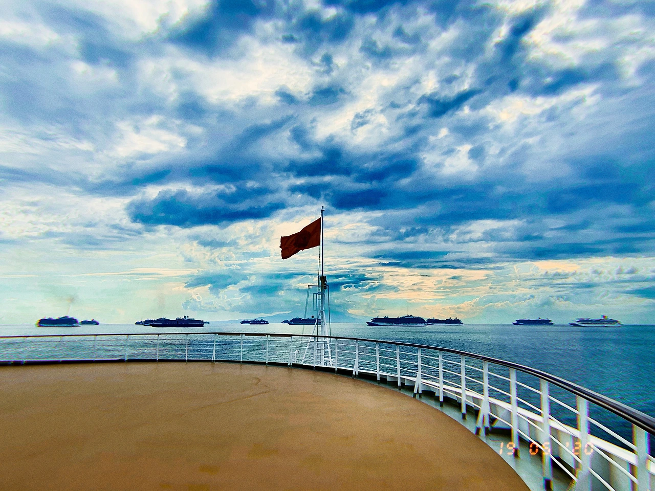 저 조그만한 텐더 보트가 왔다갔다 아주 바빴다.