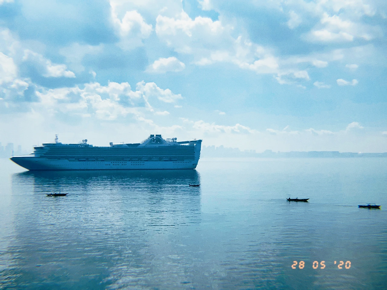 커다랗고 멋진 29척의 크루즈선들 내버려두고