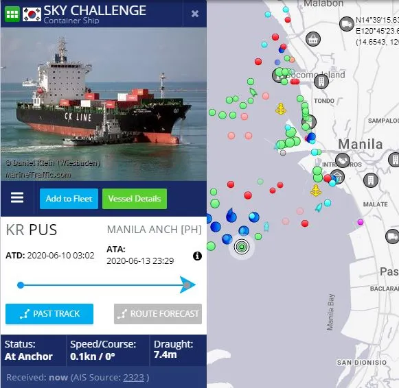컨테이너선의 위치도 모두 보여주는 사이트가 있다.