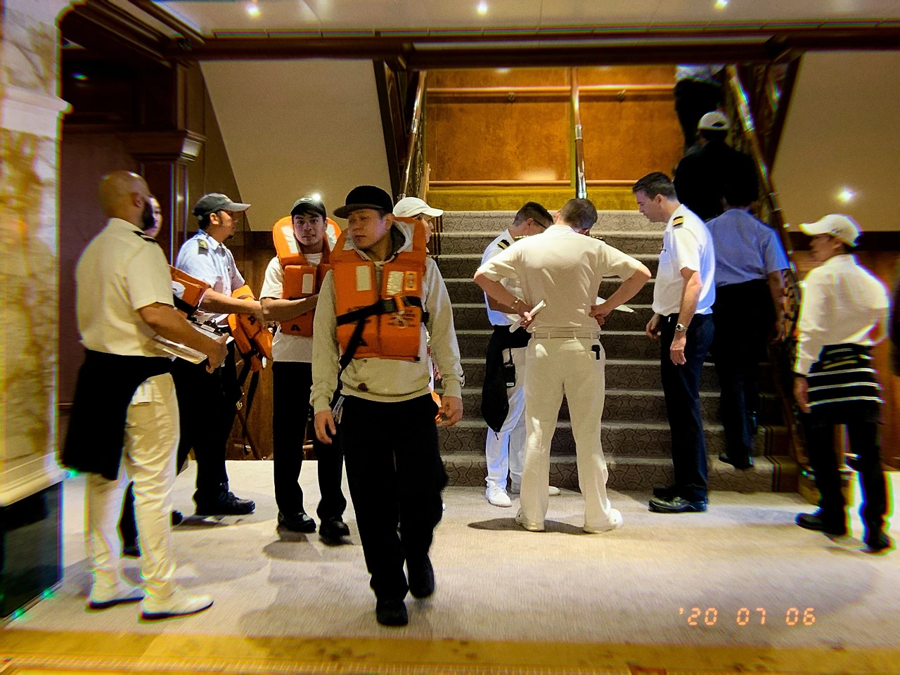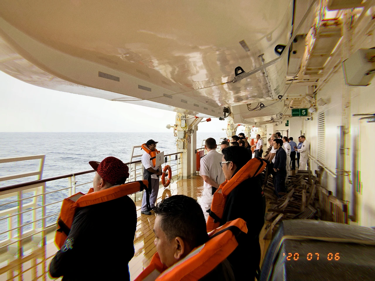 지정된 구명보트 포지션으로 다시금 집합한다.