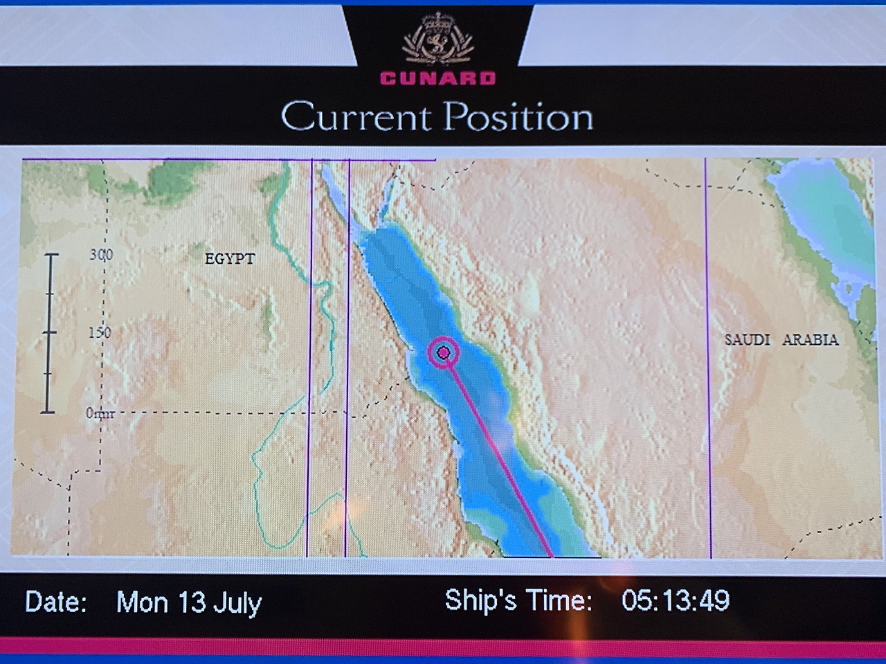 퀸 엘리자베스가 홍해를 지나고 있다.