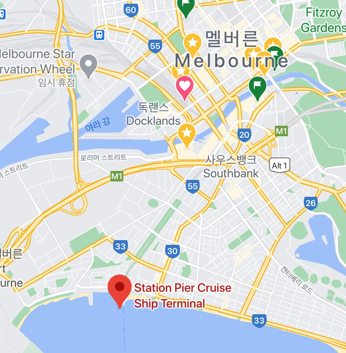 호주 크루즈가 시작되고 처음 멜버른 항구에서 외출하는 날이라, 목적지로 가는 방법을 미리 찾아보았다. 일분일초가 아까운 시간이다. 심지어 외출할 때 입을 옷도 신을 신발도 가져갈 가방도 새벽 6시에 출근하면서 미리 세팅해놨을 정도였다.