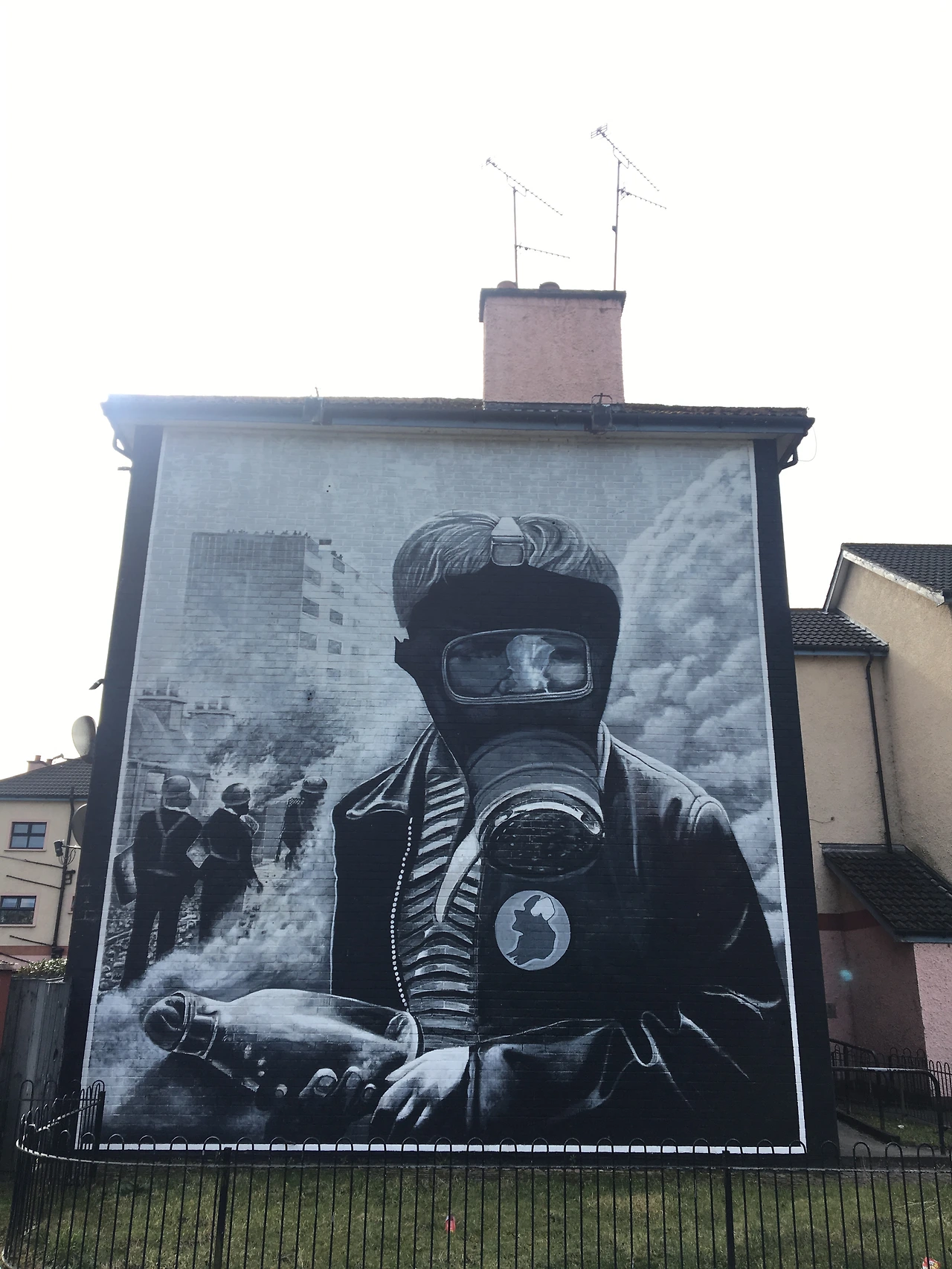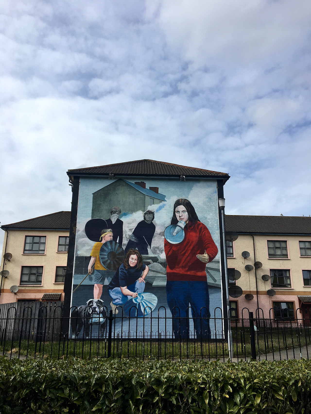 도시 안으로 들어서면 건물마다 큼지막한 벽화들이 눈길을 끈다. 1971년, 아일랜드인들이 이곳에서 영국 정부의 차별에 대항하기 위해 자신들의 시민권을 주장하며 비폭력 평화행진을 벌였는데, 영국 정부에서는 이것을 폭력사태로 간주하고 공수부대를 투입하여 13명이 죽고 27명이 다치는 비극적인 사건이 발생했다. 이것이 영화로도 잘 알려진 '블러디 선데이' 사건이라는 것을 그것과 관련된 내용을 담은 여러 벽화들을 보면서 알 수 있었다.
