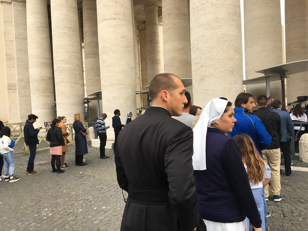 전 세계에서 모인 수만 명의 사람들과 함께하는 기분은 어떨까, 설레면서도 두려운 마음으로 숙소를 나서자마자 이미 수많은 인파들에 둘러싸이고 말았다. 의자가 있는 앞자리에 앉기 위해 전날 근위대 병사에게 입장권을 겨우 얻어내느라 고생한 보람도 없이 도착해보니 티켓은 의미가 없었다.