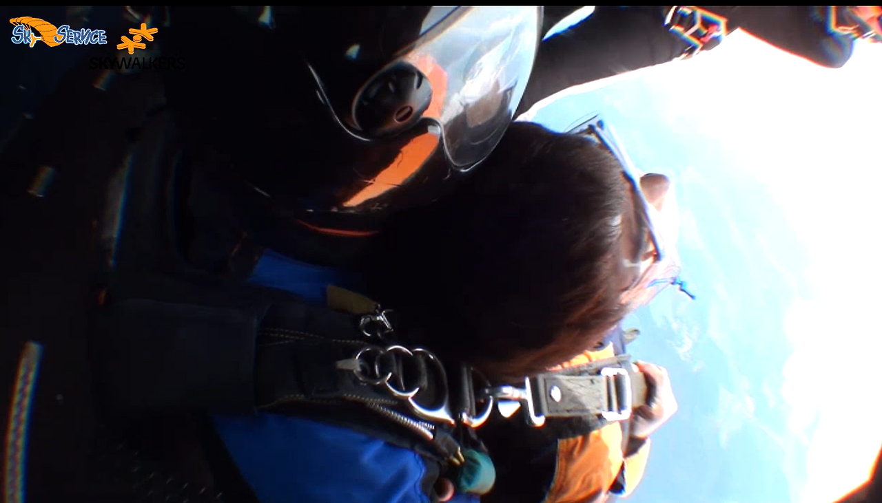 상공 4,000M에 도달했는지 경비행기 문이 열렸다. 나는 나보다 덩치가 한참은 큰 외국인 다이버의 가슴 앞에 등을 대고 같은 방향을 향해 앉아 있었다. 우리 둘은 하나의 하네스에 연결되어 낙하산을 펼치는 탠덤 점프(Tandem Jump)를 진행하게 될 것이다. 문이 열리자 내 의지와 상관없이 다리가 경비행기 문 앞으로 성큼성큼 다가가고 있었다. 뒤에서 다이버가 나를 조종하는 힘이 엄청났다. 저 멀리 구름 밑에 구름이 또 보이고, 구름층으로 뿌옇지만 저 멀리 대지가 보였다.