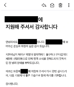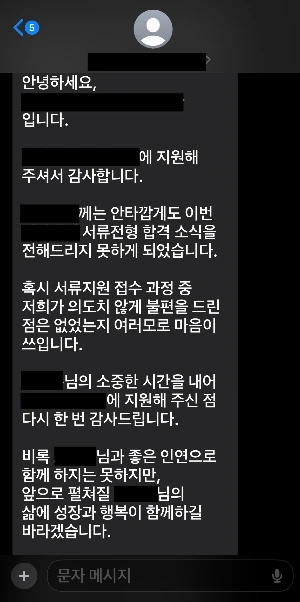 불합격 메시지를 보내야 하는 기업은 따뜻한 말로 위로하고 내 앞날을 응원한다.