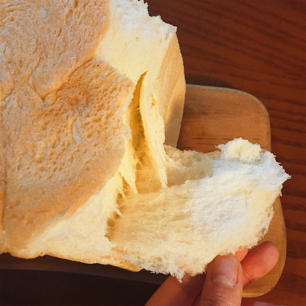 밋밋한 우유 식빵이라고 무시하면 안 된다. 멋있게 뜯어서 크게 한 입.