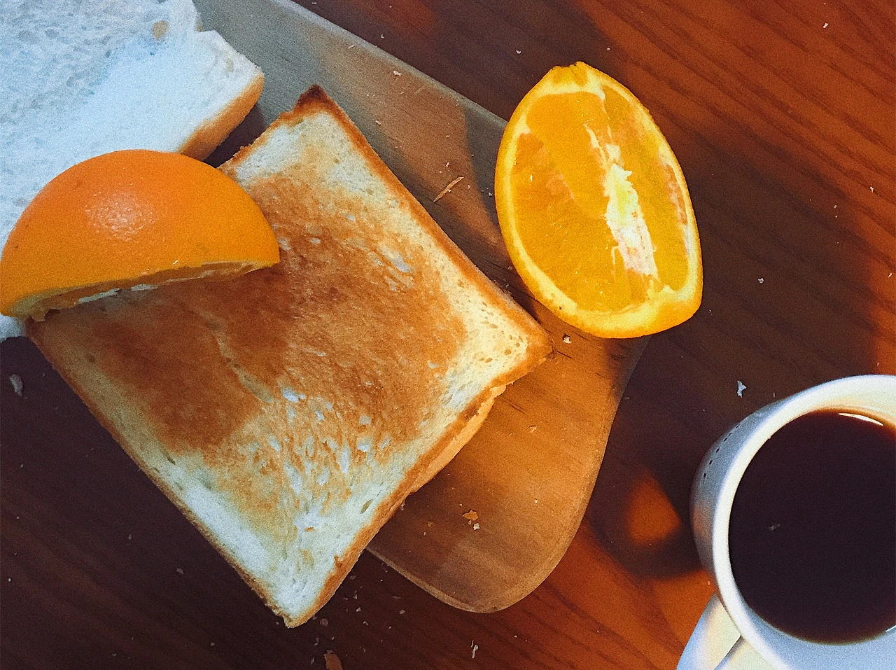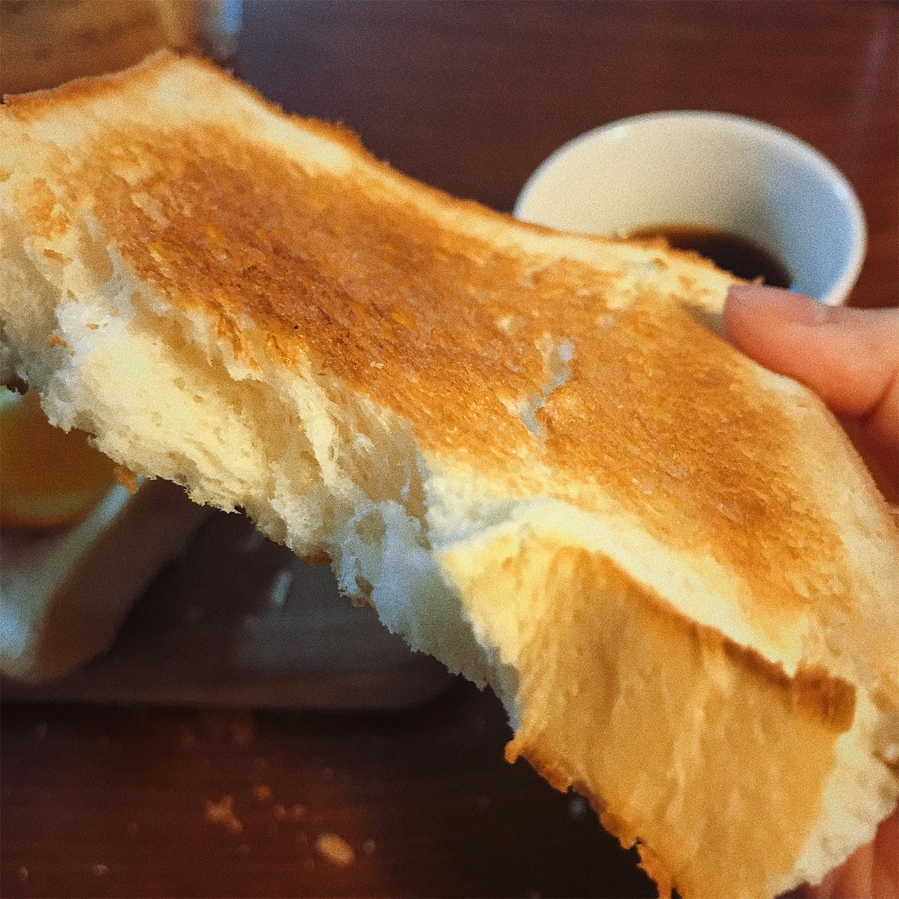 비교할 생각은 없었고, 둘 다 맛있었다. 살짝 바삭한 걸 좋아하는 난 겉만 살짝 바삭한 토스트 버전이 내 스타일이긴 했다. 잼이나 버터를 발라먹고 싶은 생각이 전혀 들지 않는 우유식빵. 여기에 과일, 커피 하나만 충분.