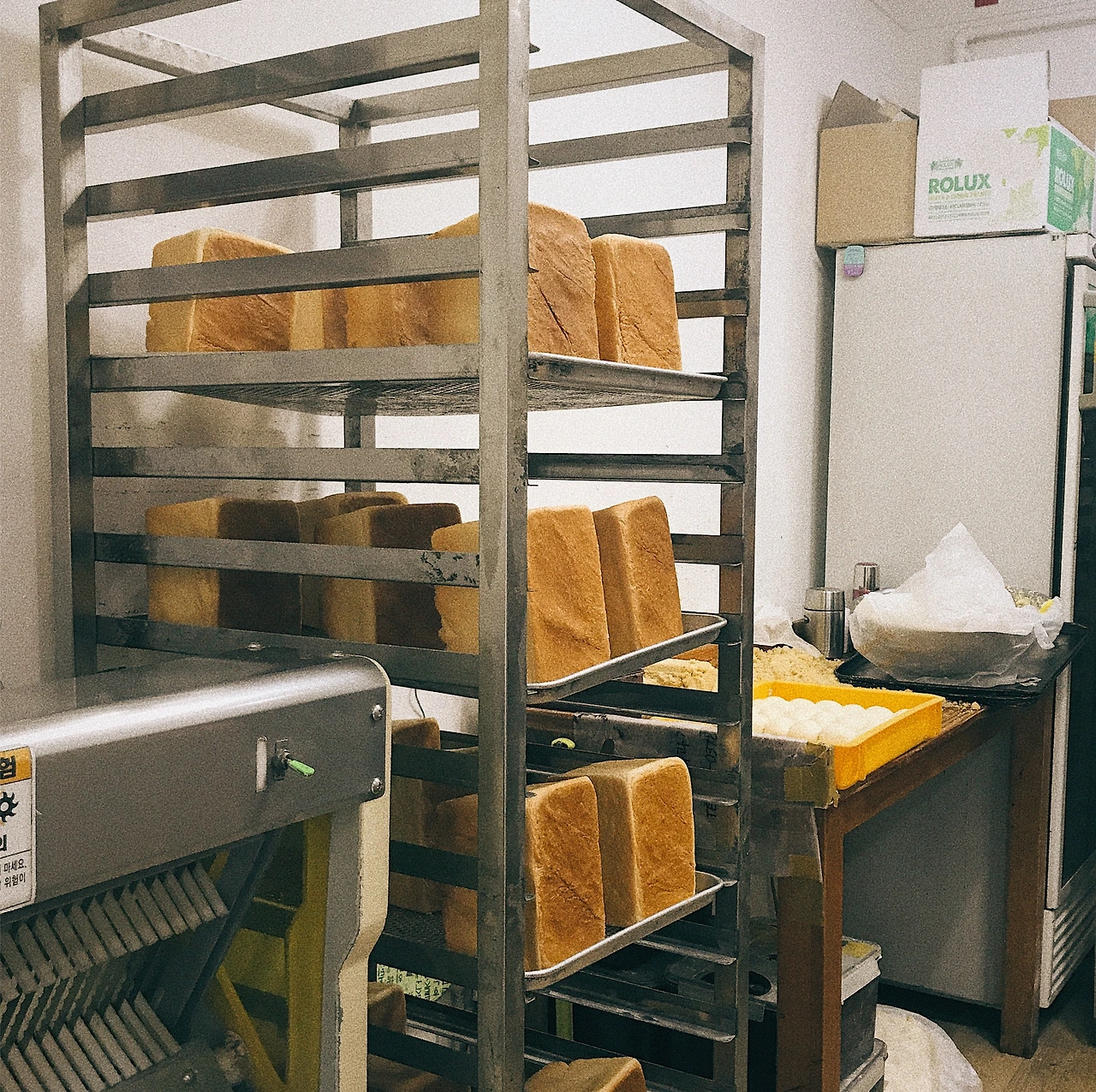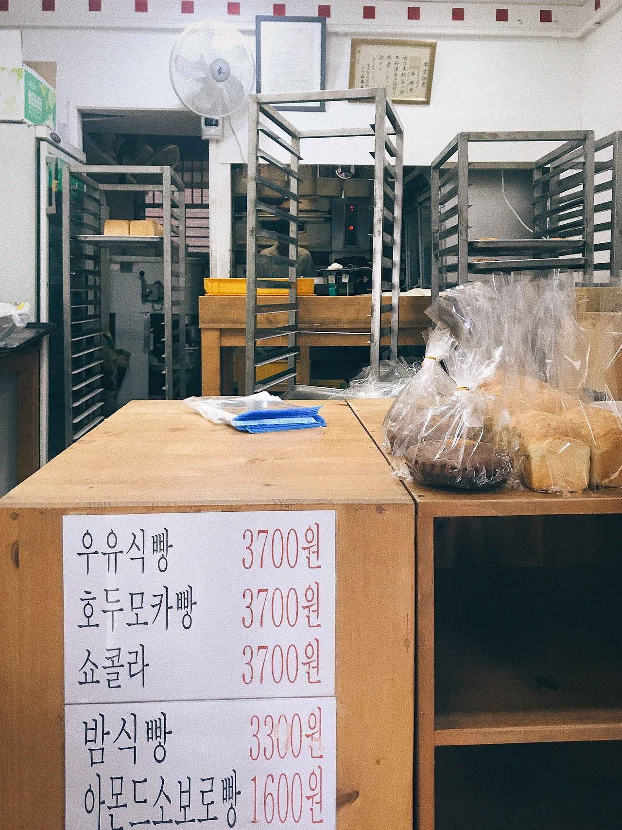 자그마한 내부. 그리고 안에서 열심히 우유 식빵을 구우시는 김진환 아저씨. 파리바게트 같은 빵이 진열돼있는 모습이 아니라, 정말 장인이 빵을 만드는 작업소 같았다.