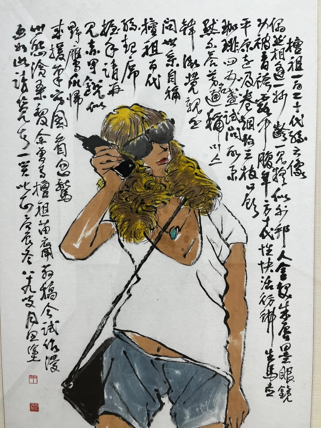 월전은 1912년 생인데 '단군일백이십대손'은 2001년도 작품이니 무려 90세에 그린 그림이다. 2005년에 작고하셨는데 이 생 마감 4년 전까지 작업을 했다는 것에 한번 놀라고 90세 노화백이 그린 감각에 또 한 번 놀랐다. 월전의 제자 인터뷰에 따르면 그는 동물의 순간을 감각적으로 포착해 그리는 것으로 유명한데 새를 그릴 때도 보지 않고 본인의 연상만으로 완벽하게 그리는 것을 보고 천재라고 느꼈다고 했다. 이 그림과 글도 일필휘지 했을 것이다. 월전은 한학자 집안의 자제로 어려서부터 글을 공부한 탓에 시서화에 능했다. 2024년에 보는 시서화라니 심지어 글도 재밌다.