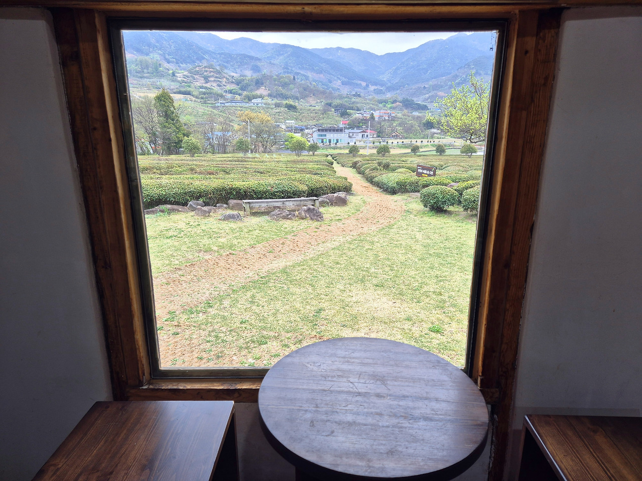 추천받은 우전녹차와 매암홍차를 시켰다. 녹차는 개운했고, 홍차는 향이 깊었다. 찻잔을 손에 들고, 풍경을 오래 바라보았다. 차밭은 크지 않았지만 단정하게 정리돼 있었다. 완만한 이랑 위에 잎이 고르게 자라고 있었고, 초록빛이 물기를 머금고 고요히 밭을 덮고 있었다. 차 한 잔과 빗소리, 그리고 초록빛 풍경이 몸과 마음을 천천히 정화해 주었다.