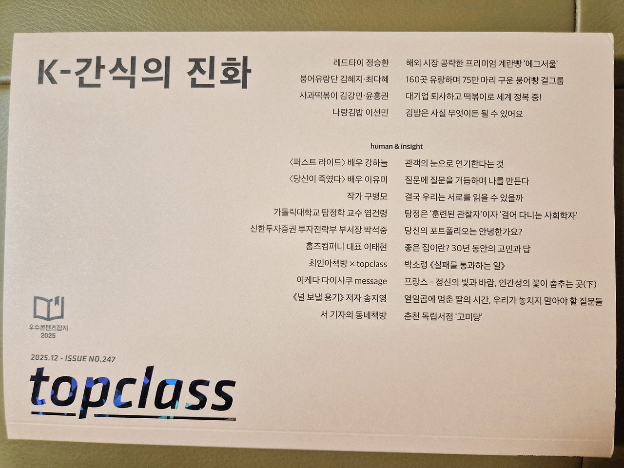 지난주, <톱클래스> 12월호에 실릴 인터뷰를 했다. 질문지가 도착했을 때부터 가슴 한켠이 불규칙하게 쿵쾅거렸다. 원고를 쓰던 시절의 날 것 같은 감각이, 왜인지 다시 가까워져 있었다. 인터뷰 장소로 향하는 길, 눈가가 뜨거워질까 봐 마음을 꽉 조였다. 모르는 사람 앞에서는 약한 모습을 보이고 싶진 않았다.
