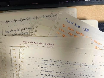 ‘정리 좀 해’ 엄마는 상자를 볼 때마다 말씀하셨지만, 정리가 말처럼 쉬운 게 아닌 것이 정리를 하려면 일단 내용물 파악을 해야 하는데, 빽빽한 글씨로 가득한 저 노트를 일일이 살펴 ‘버릴 것’과 ‘보관할 것’을 구분하는 게 쉬이 엄두가 나지 않았다.