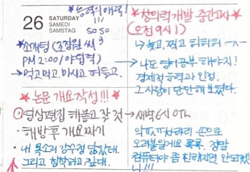 졸업 즈음 다가가면 기록에는 비슷한 종류의 고민들과 끊임없는 다짐, 그리고 계획이 반복적으로 등장한다. 기억에는 이것저것 거침없이 해낸 줄만 알았는데, 고민으로 눈떠서 다짐하면서 잠들곤 했다. 자잘한 실수들, 다시는 이러지 않겠다는 다짐들. 결국 이런 순간순간이 모여 지금의 내가 된 것이겠지. 지금의 내가 완전체라는 말이 결코 아니라, 이런 반성과 다짐, 그럼에도 불구하고 계속 고쳐지지 않는 나의 기질이 끊임없이 부딪히고 괴롭히고 설득하고 어떤 것들은 타협해서 지금의 내가 되었구나 싶다.