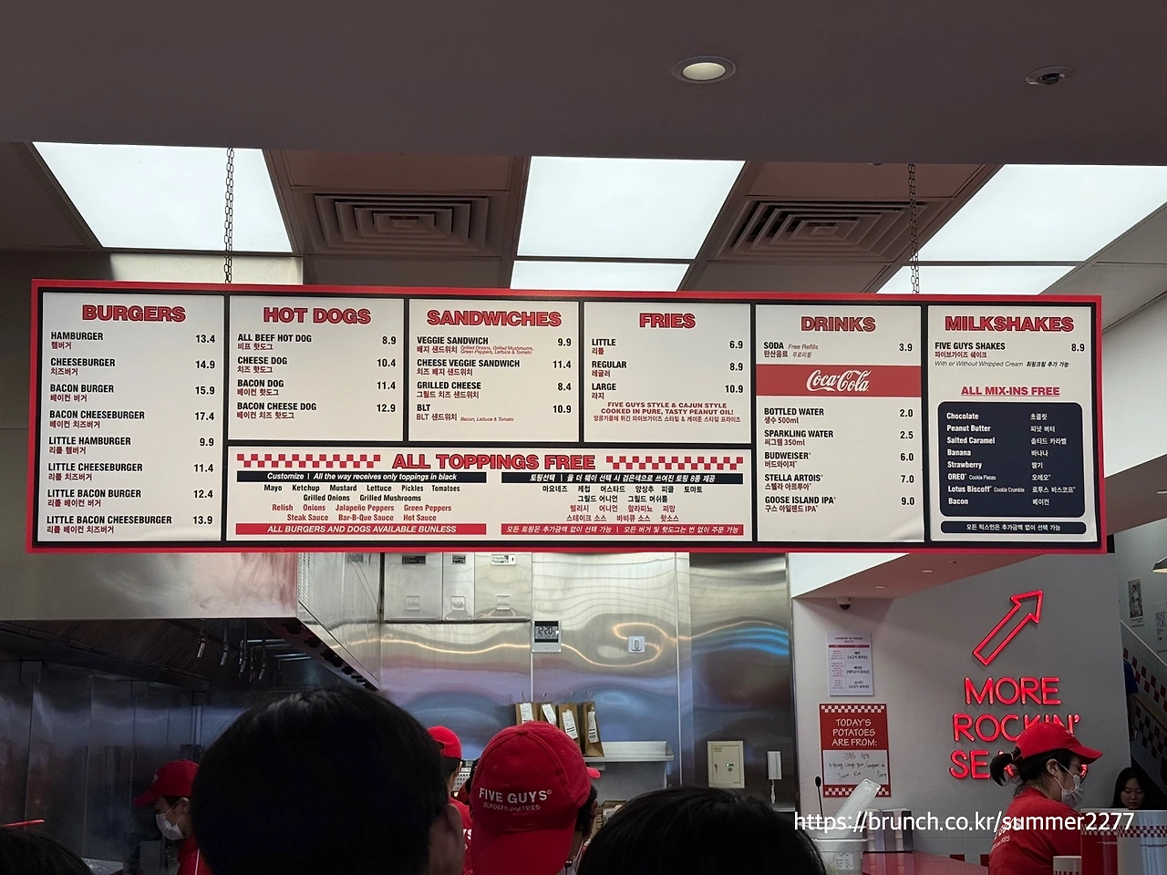 파이브가이즈 버거는 꽤 많은 것을 선택해야 한다.