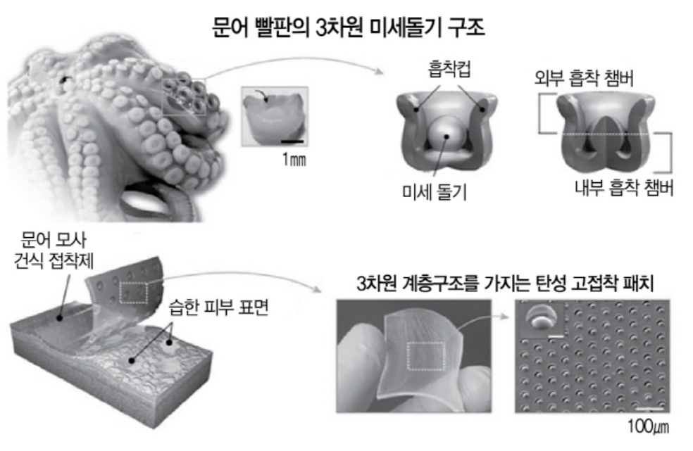 최근에는 방창현 성균관대 교수가 '문어 빨판 모사 고 점착 패치 기술'을 개발했다.