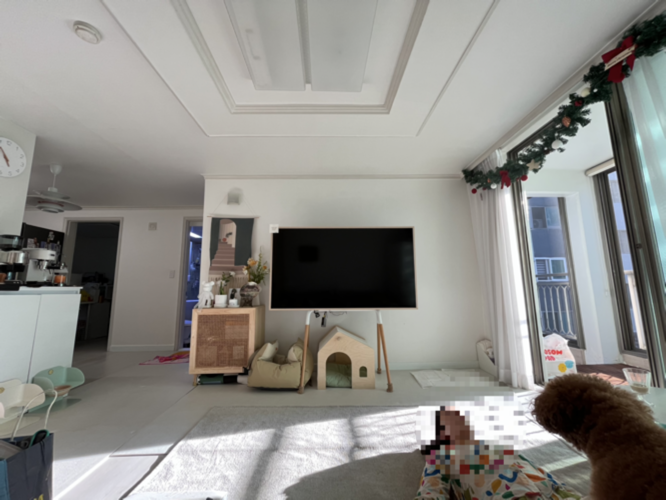 바로 엄마랑 출동해서 옷방, 주방, 세탁실과 베란다, 화장실까지 대충 정리해 줬는데 아래 사진이 그때 찍은 애프터 중 거실 사진이다.