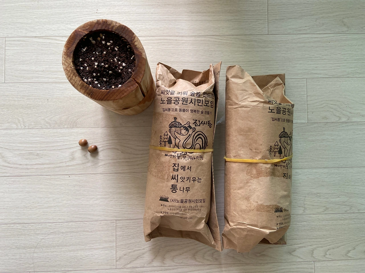 팬데믹 이후 사람들은 다시 고민하기 시작했다. '동물들이 안전한 숲을 만들면 사람들도 안전하지 않을까?'라는 질문을 가지고 비대면 시대에 사람들과 함께 숲을 만드는 프로젝트를 시작하였다. 그중 하나가 '집씨통 만들기'이다. 집씨통은 쓰러진 나무를 재활용 하여 만든 나무 화분에 도토리 씨앗과 흙을 심어 100일 동안 가정에서 싹을 틔운 후 숲으로 옮겨 심어 주는 프로젝트이다.