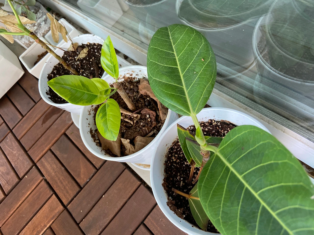 그뿐이 아니다. 일부 고무나무 가지를 잘라 물에 담가 두면 잘린 부분에서 다시 뿌리를 내린다. 어느 정도 뿌리가 자라면 다시 흙에 옮겨 심어 주는 것이다. 고무나무 가지가 또 한 그루의 나무로 자라나게 되는 것이다. 이렇게 만든 작은 화분을 지인에게 나눠 주기도 하였다. 그 기쁨이 크다.