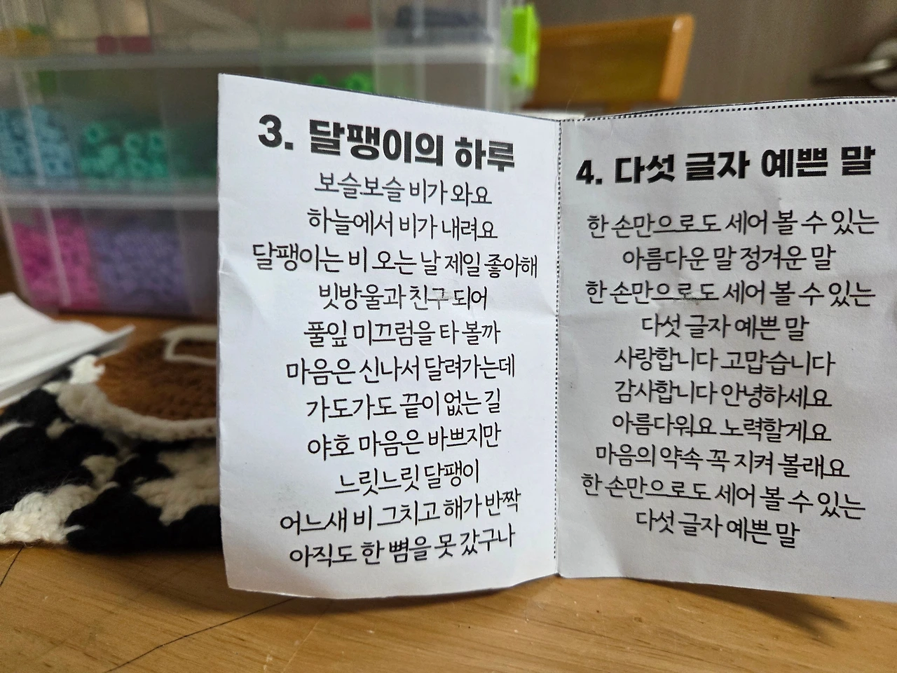 거실에 늘어져 있던 아이 물건들을 정리하다 찾은 종이책.