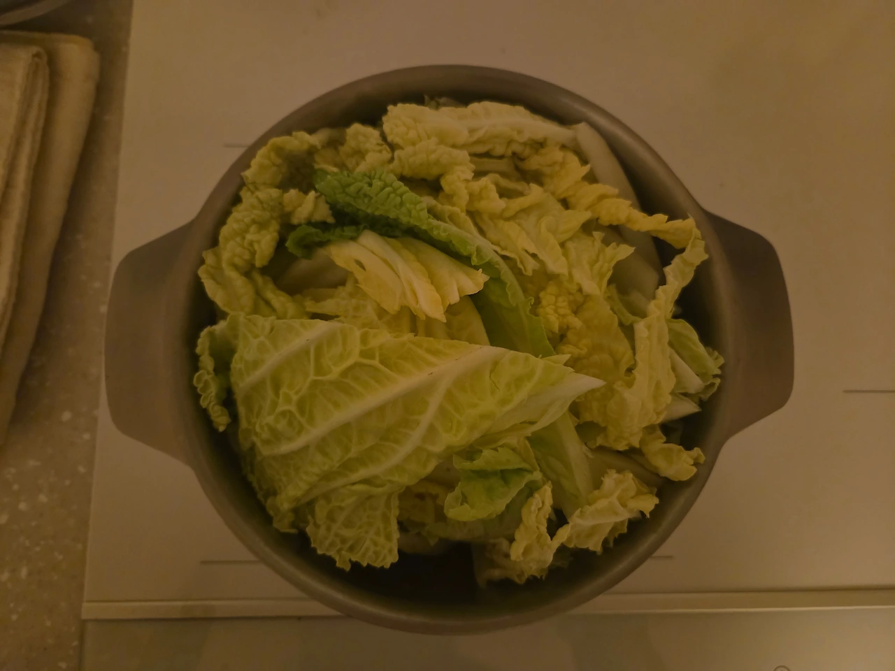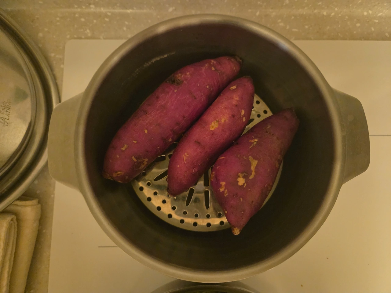 아침에 먹으려고 어제저녁에 준비해 두고 잔 배추나물과 고구마찜. 배추나물은 생채소가 먹고 싶어 샐러드로 바뀌었다.