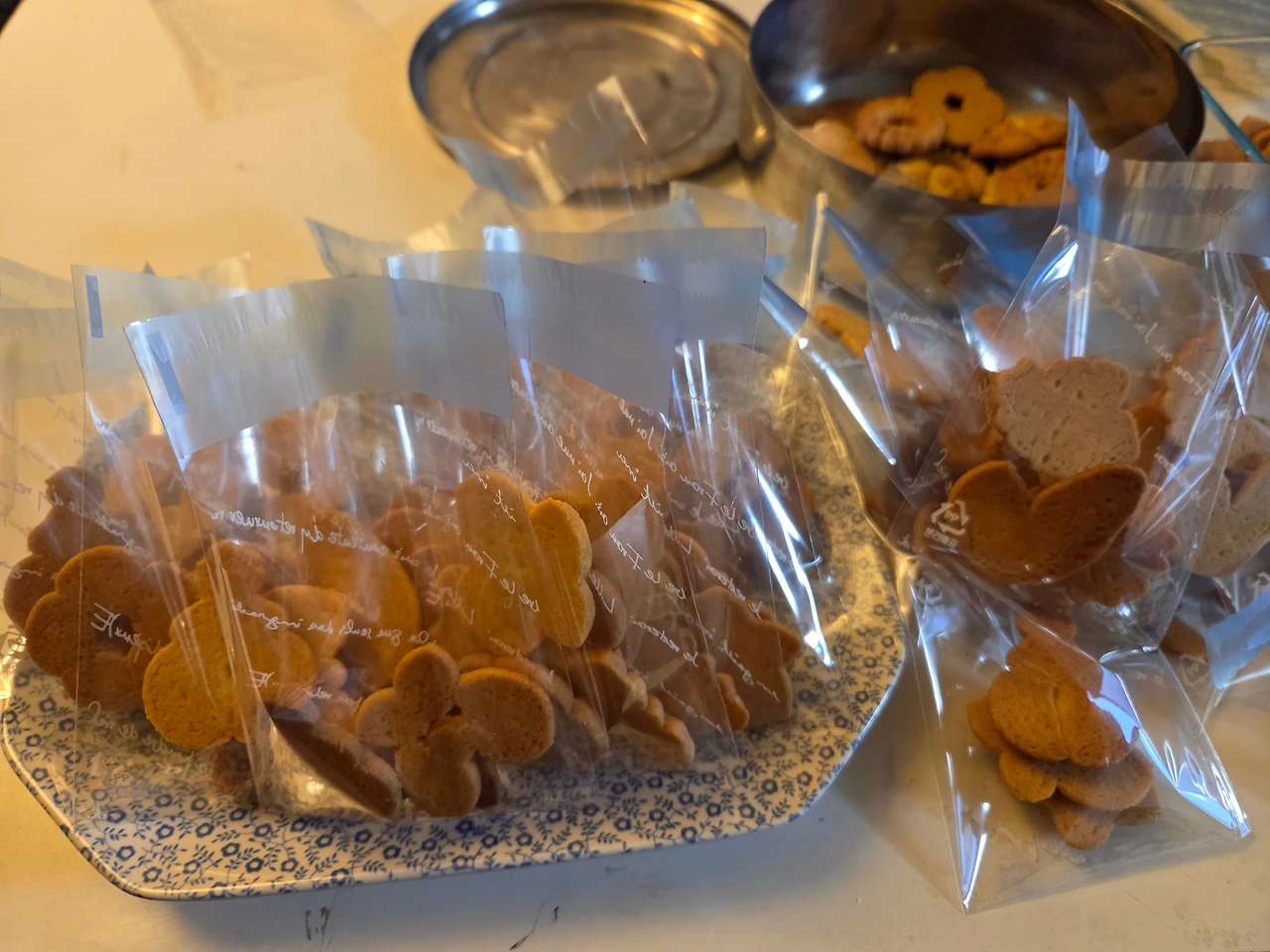 아침에 작은 아이 돌봄반 친구들과 같이 나눠 먹을 쿠키 포장을 했다. 아이 돌봄반에 학생 스무 명과 돌봄 선생님 한분이라고 했다. 쿠키를 3개씩 넣어 25개 준비.