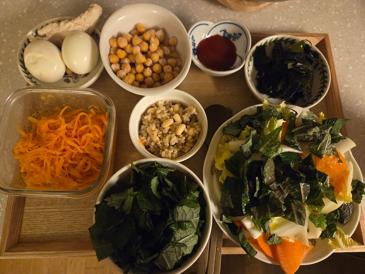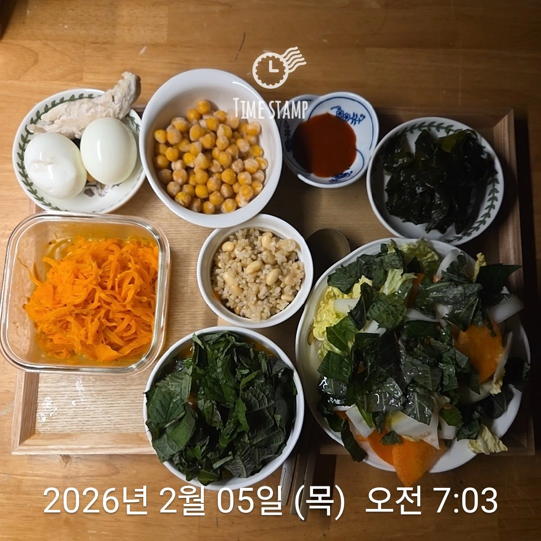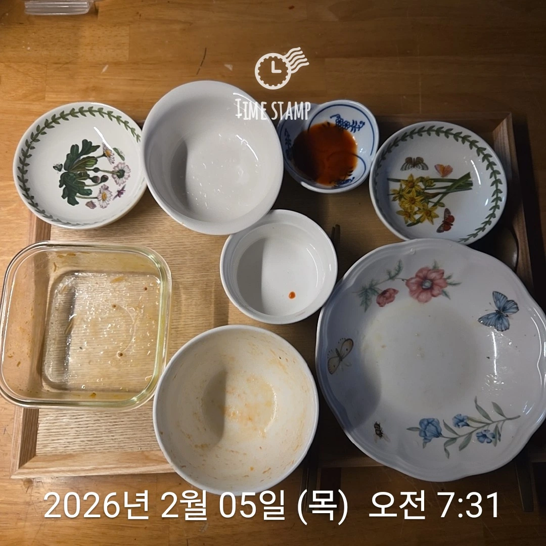 오늘 아침. 메뉴를 적지 않고 부엌에 나가 생각난 대로 차렸다. 미리 만들걸 준비할 때보다 더 간소하게 차려졌다.
