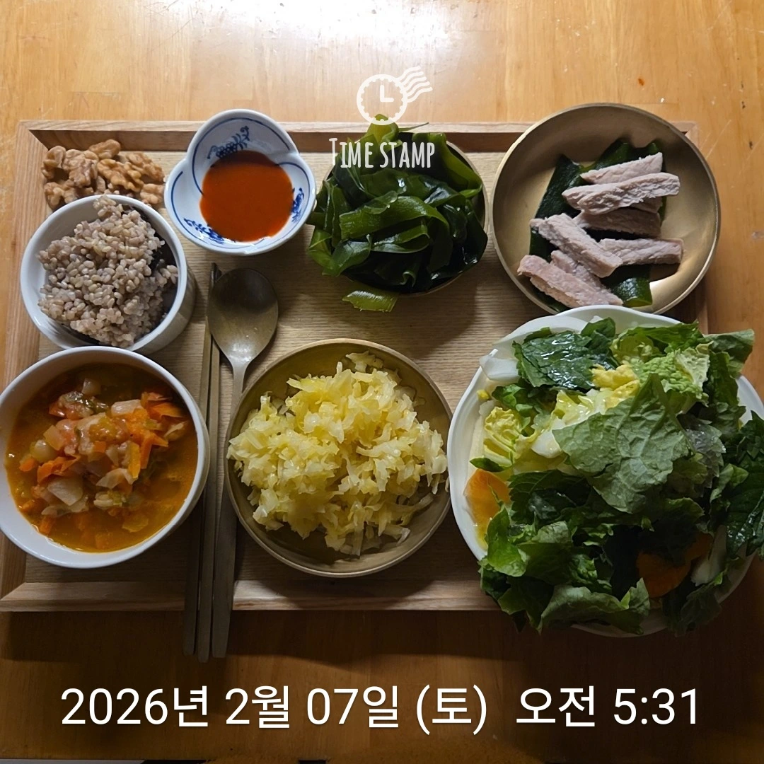 아침 식사는 시작. 삶은 계란, 견과류, 찐 고구마, 병아리콩, 땅콩버터, 쉬라즈샐러드, 밥과 김치, 슬라이스치즈, 포션 버텨, 아보카도, 토마토야채수프, 양배추사과샐러드. 그렇게 계속 먹을 걸 찾아먹은 오늘 오전. 먹느라 입도 위도 바쁘고 쉼 없이 운동한 날. 오늘은 오전 내내 허기졌고 음식 탐식에 바빴던 날.