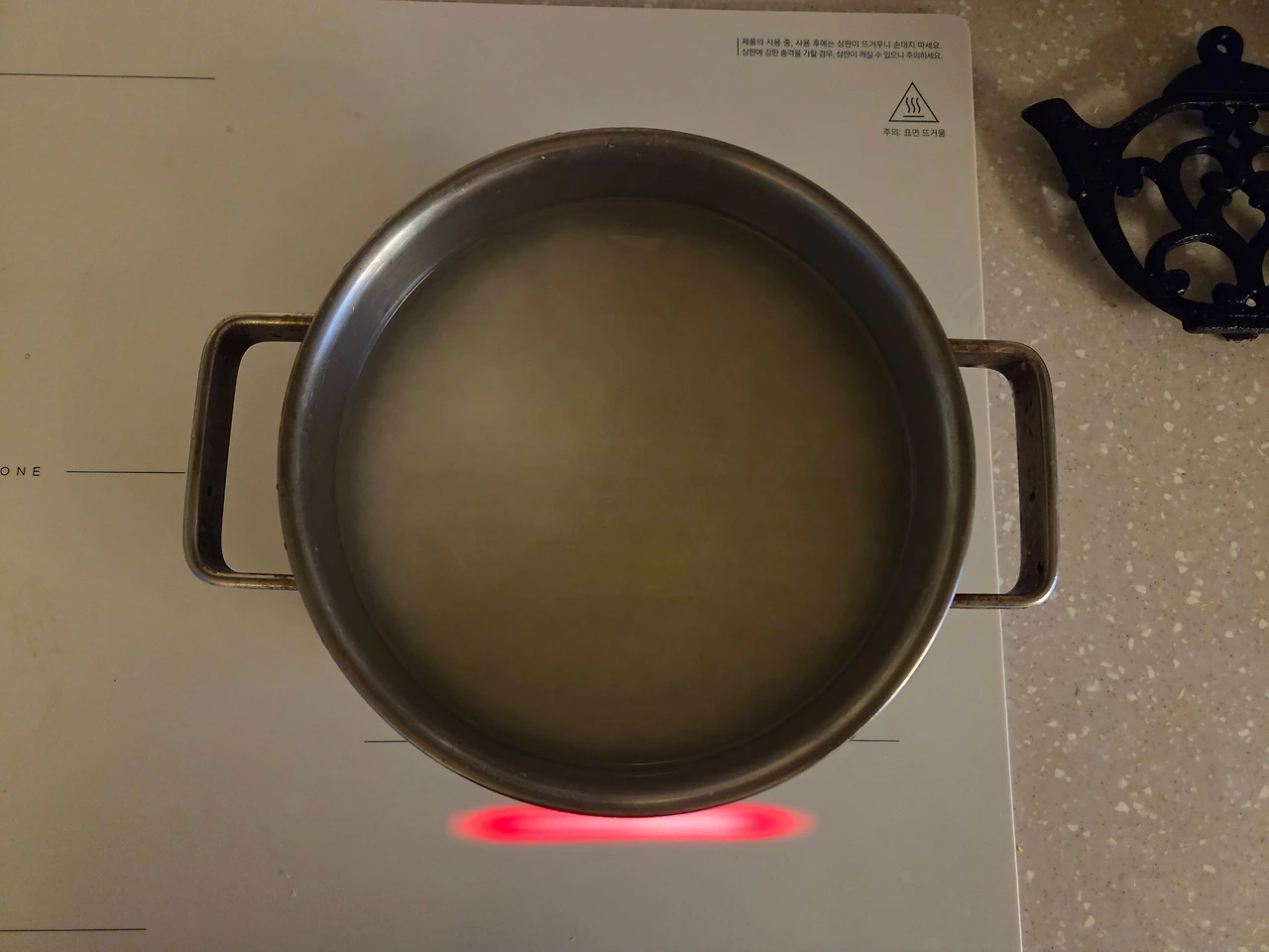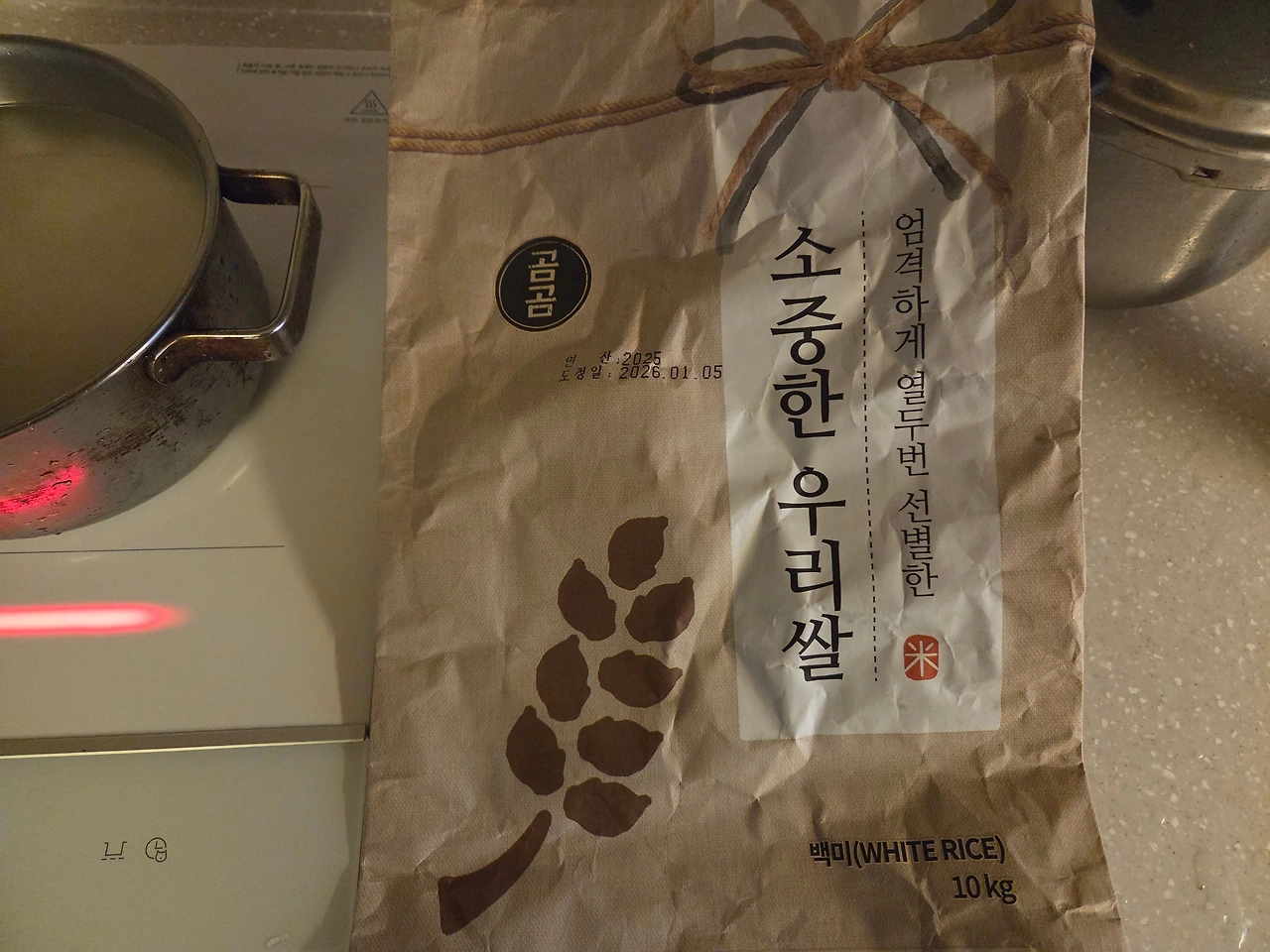 10kg 포대 쌀로 앉힌 마지막 밥. 부족해 새 쌀가마에서 쌀을 더해서 밥을 안쳤다. 19일 만에 10kg 쌀 소비.