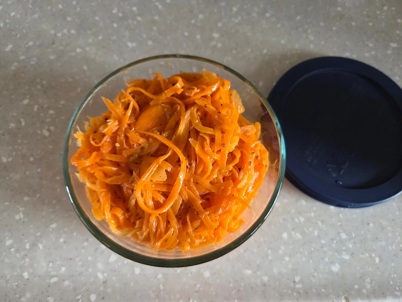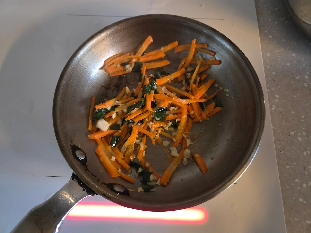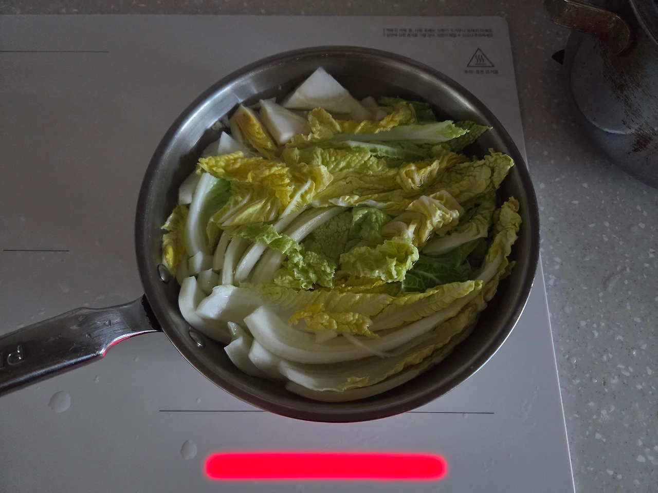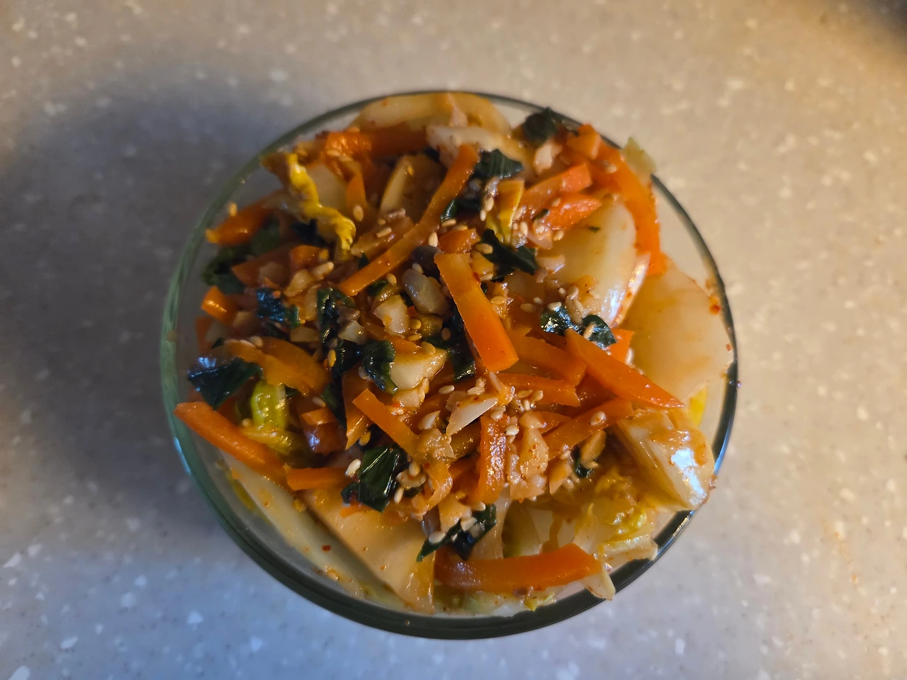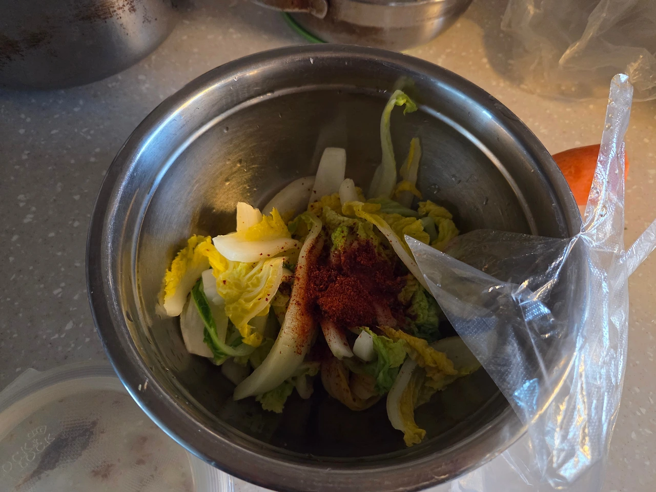 배추 데치고, 당근 볶고, 양념에 비벼 만든 배추나물.