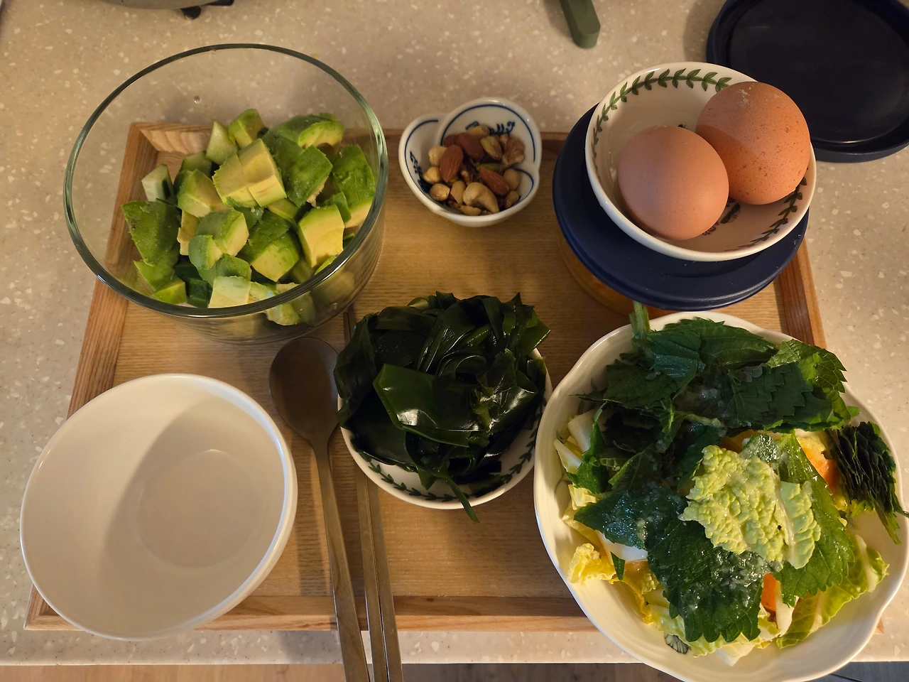 아침식사 준비 중. 아보카도오이밥.
