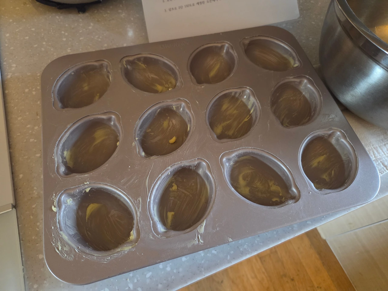 3. 버터를 꼼꼼히 바른 틀(냉동실에 넣어두면 훨씬 잘 떨어진다)에 반죽을 짠다