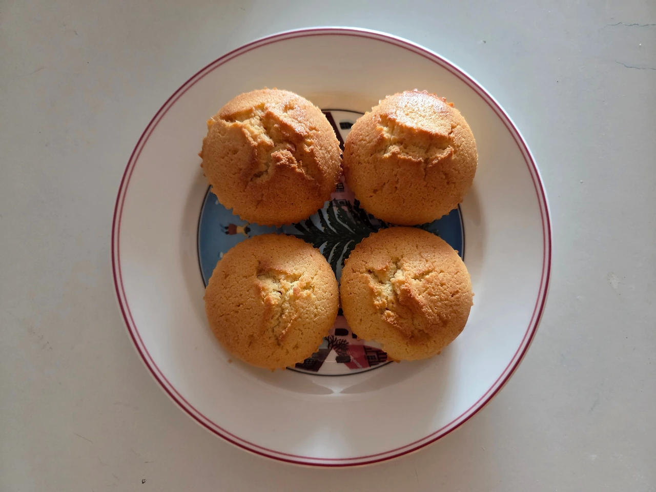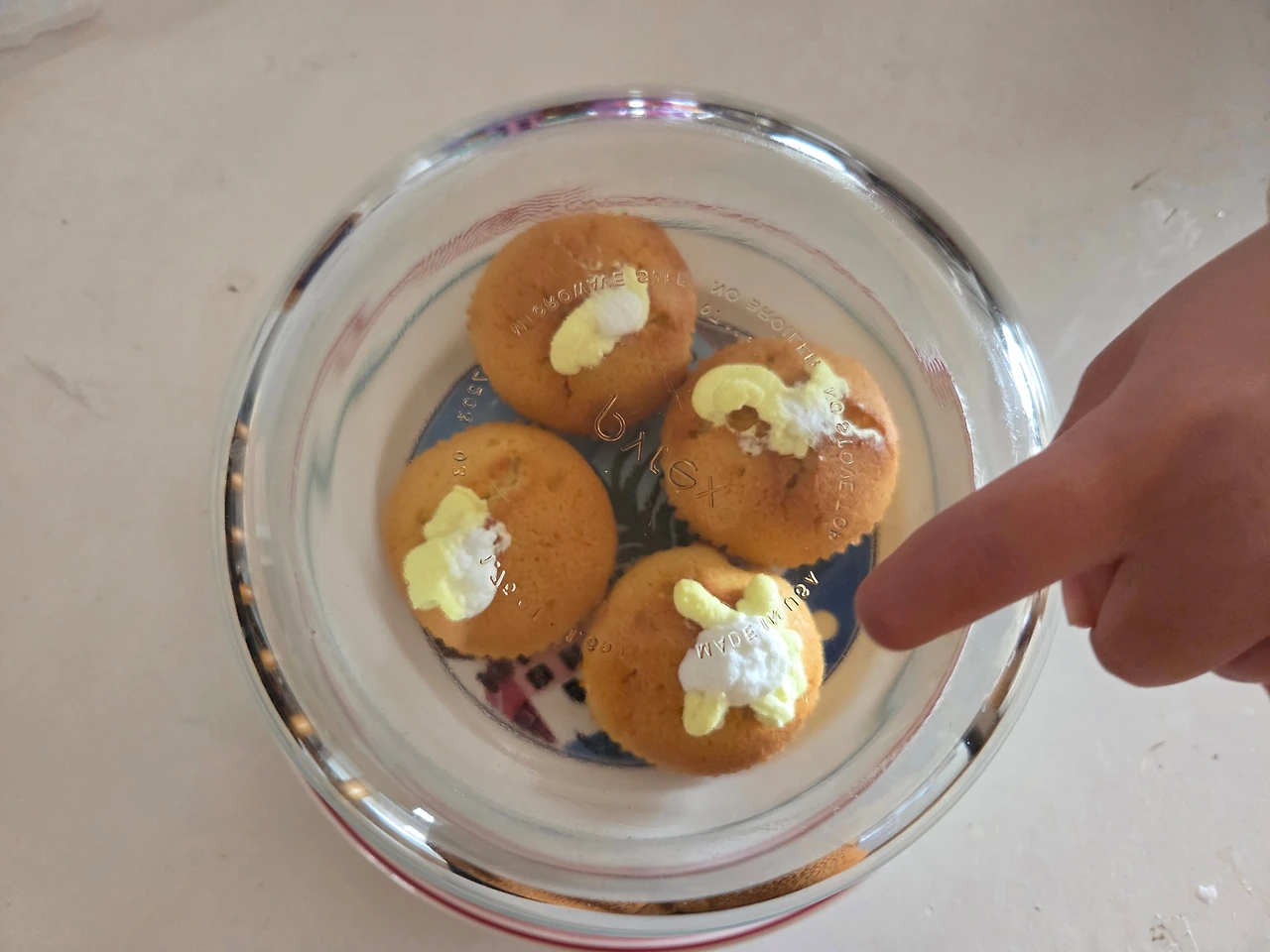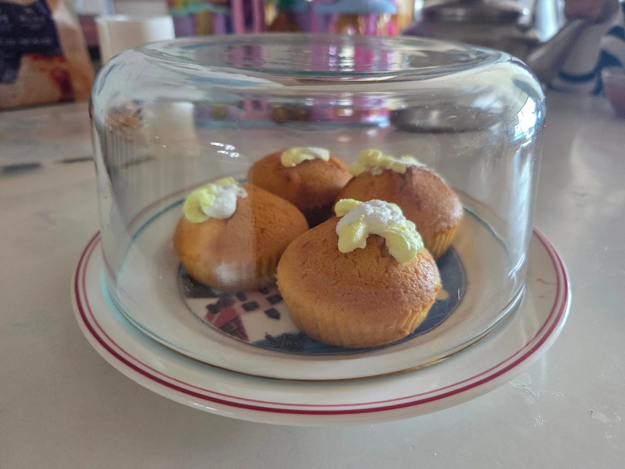 금강산이 두 번 변할 정도의 시간만에 만든 머핀. 케이크 덮개가 깨져 파이렉스 유리찬기로 덮어 보관.