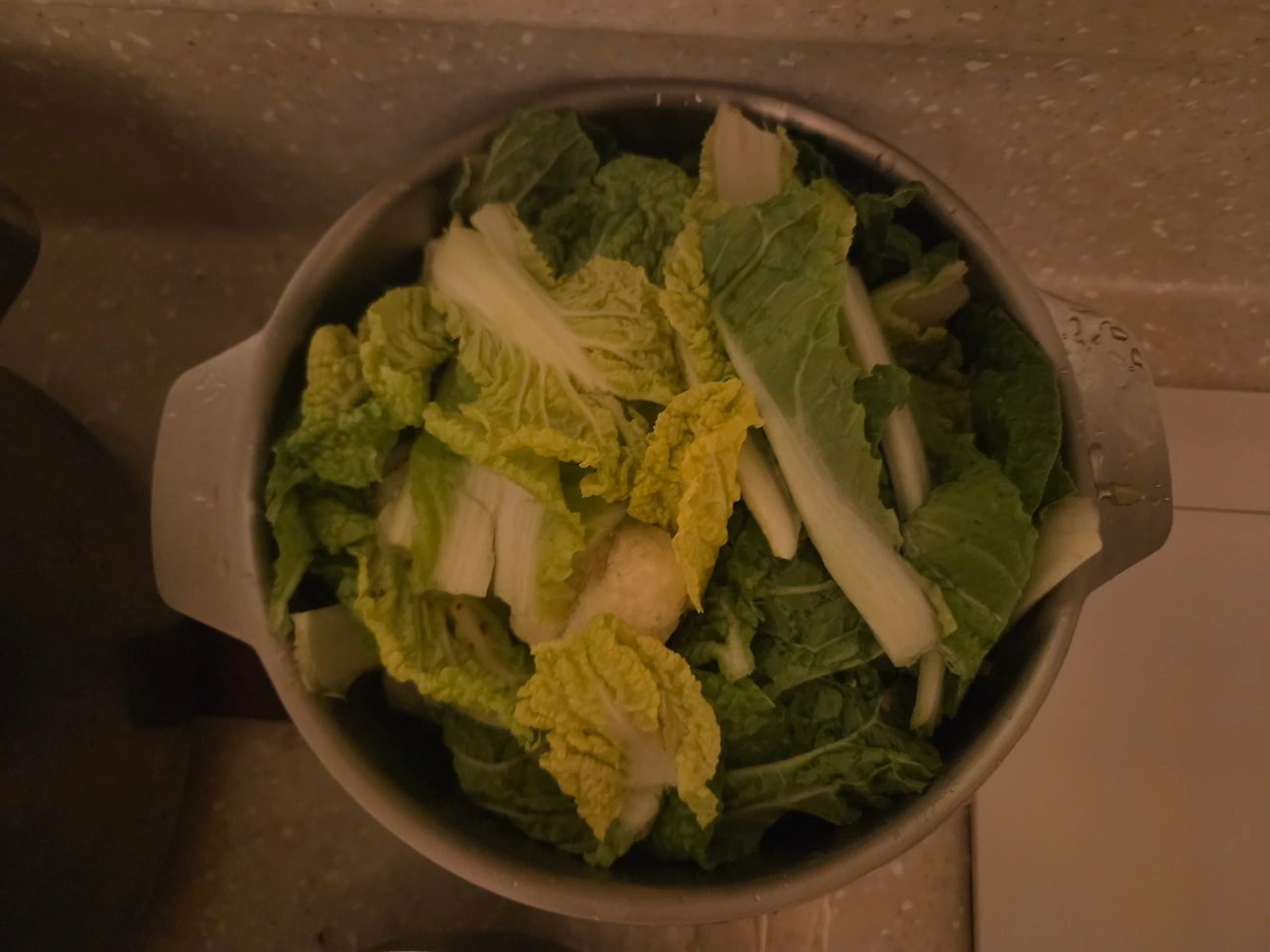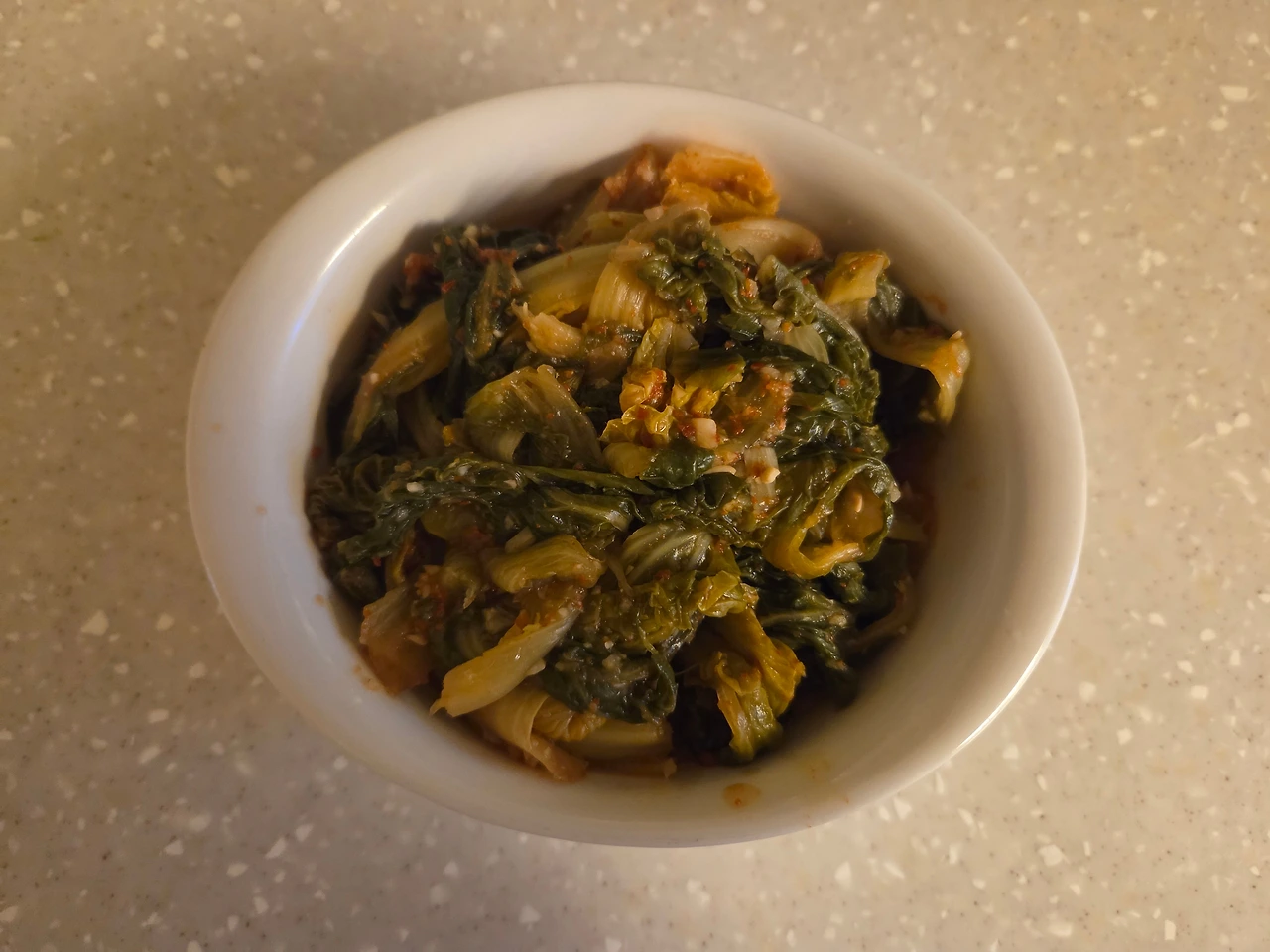 먹고 남은 배추나물은 용기에 담아 두었다.