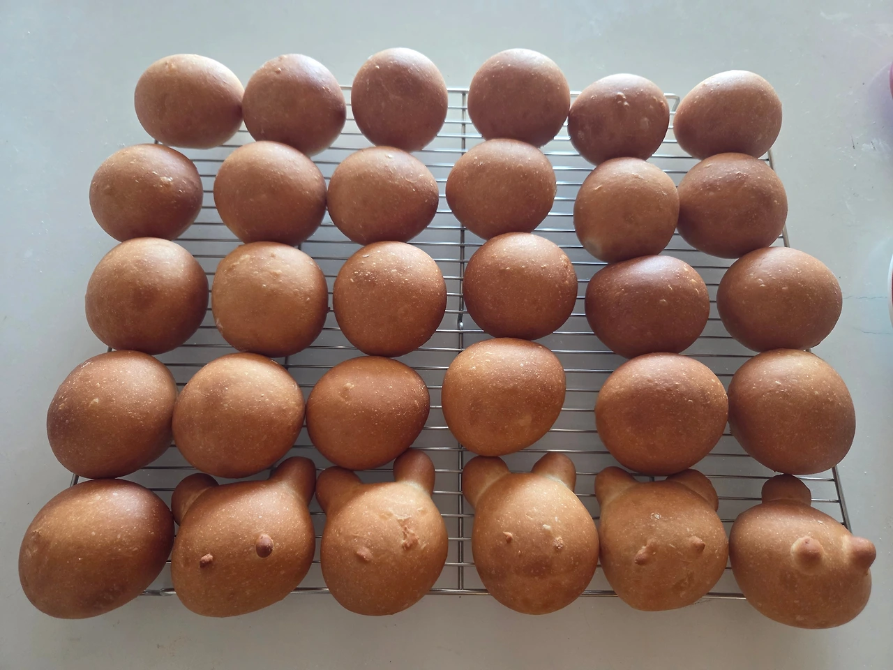 설날. 집에 있다 1년 넘도록 안 만든 빵을 만들기로 했다. 쉬운 모닝빵으로. 밀가루 600그람을 기준으로 만들었다. 역시 1년 넘게 멈췄던 반죽기로 반죽을 하고 35~38그람씩 분할해 30개 모닝빵이 됐다.