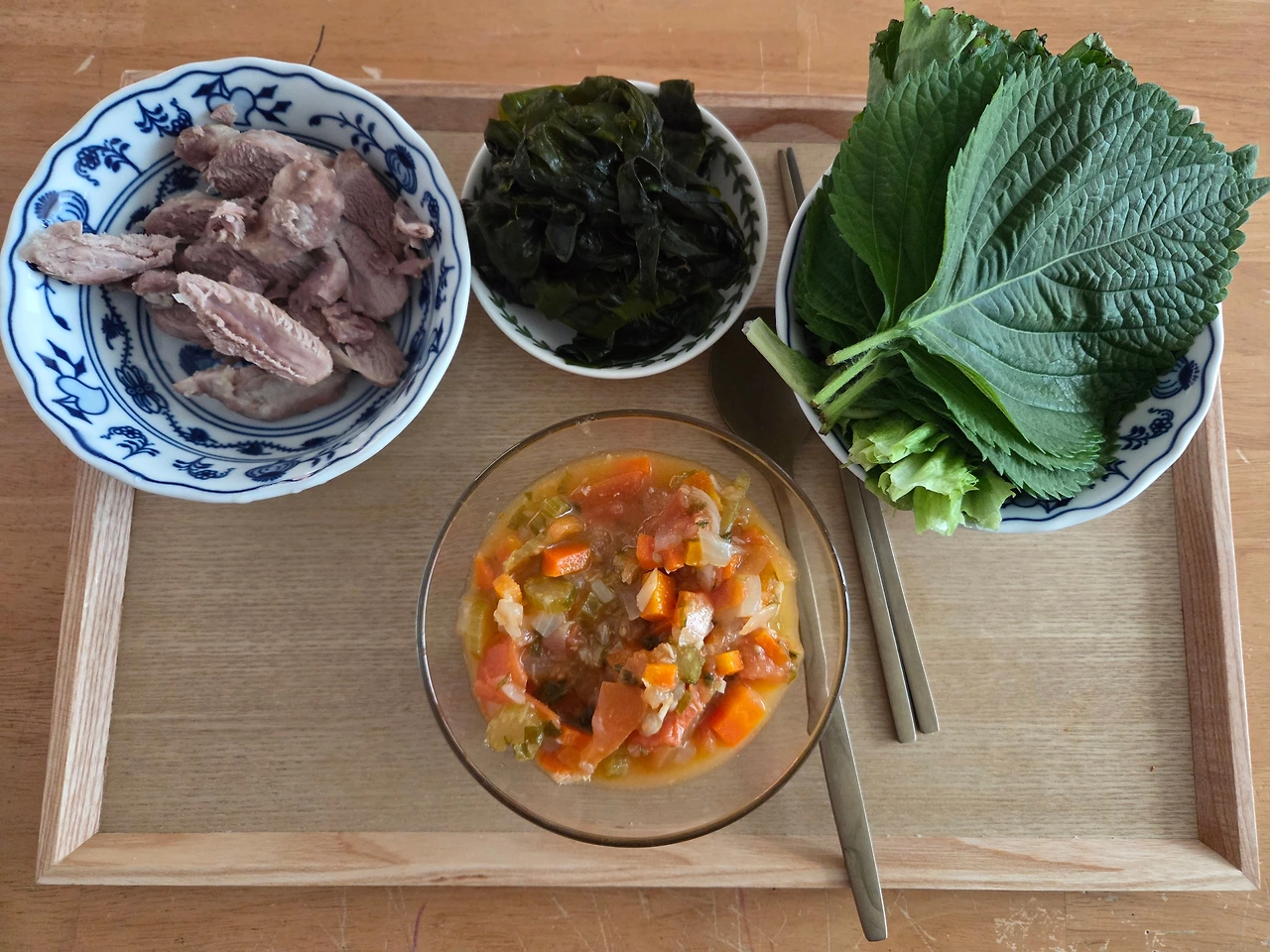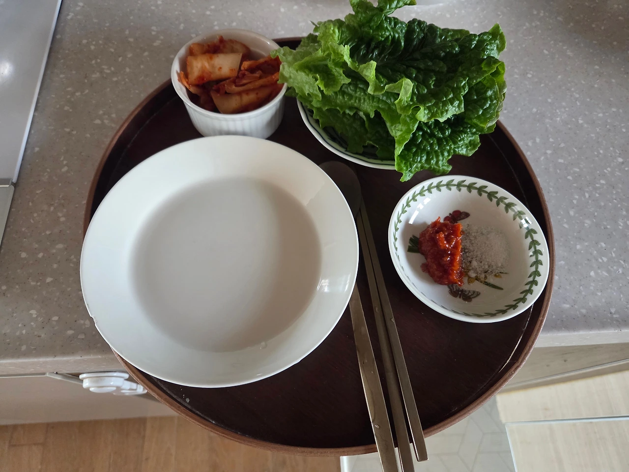 나와 큰아이의 수육 아침.